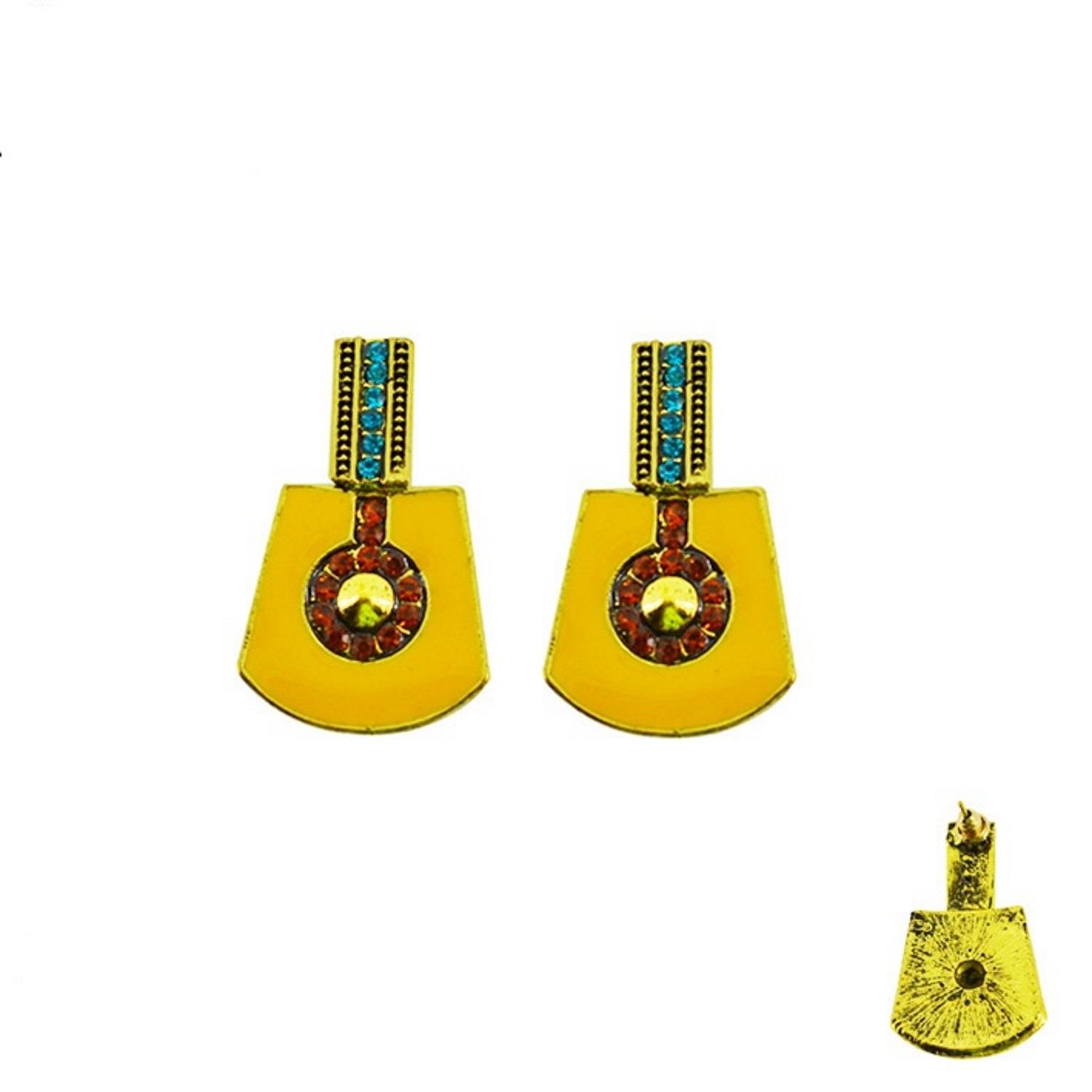 Boucles d'oreilles fantaisie en métal doré, émail et verre.