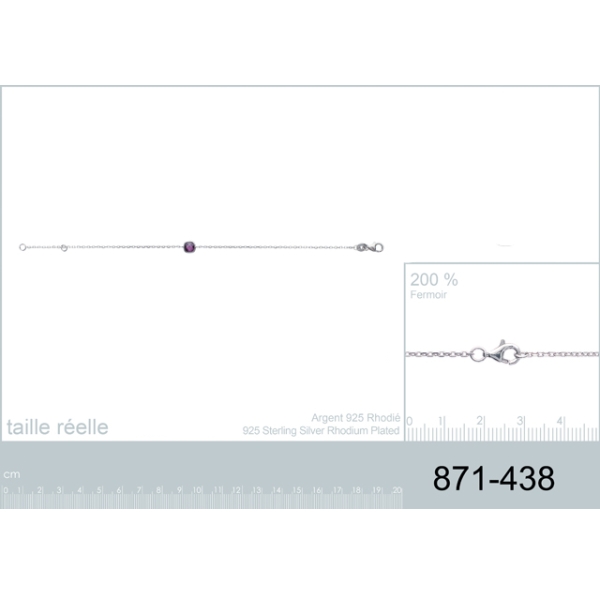 Bracelet en argent 925/000 rhodié et pierre synthétique.