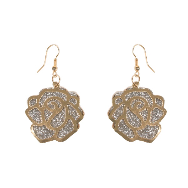 Boucles d'oreilles fantaisie en métal doré et strass.  Adulte Femme Fleurs Indémodable
