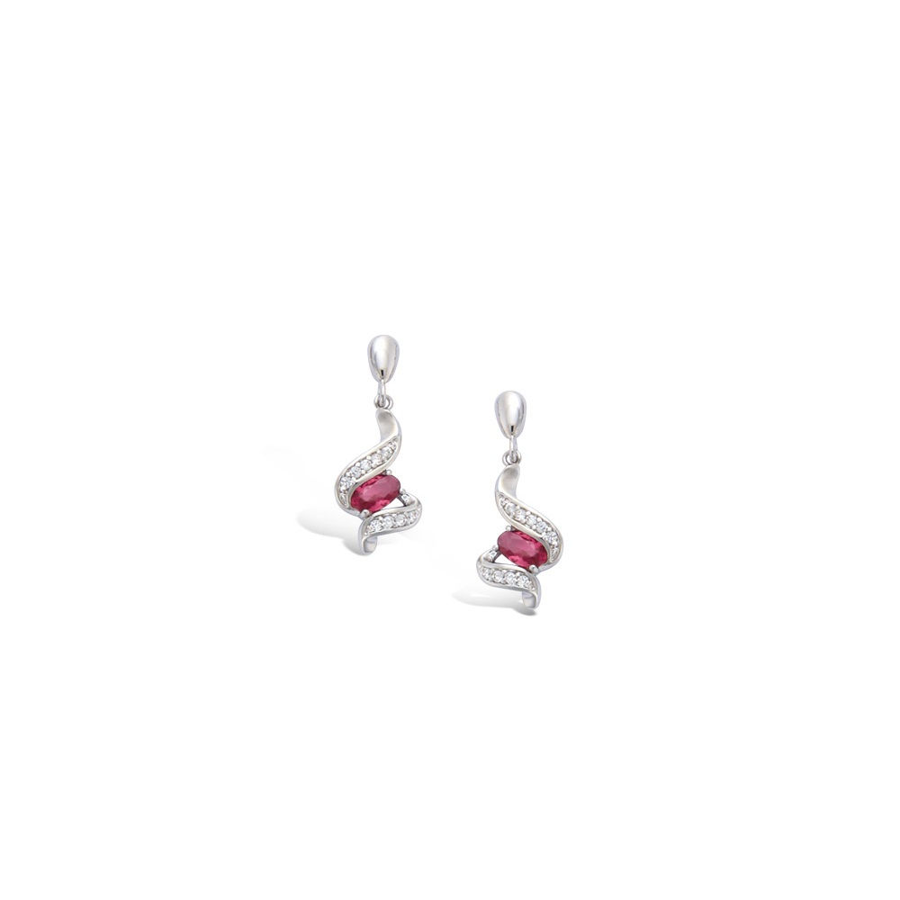 Boucles d'oreilles en argent 925/000 rhodié, oxyde de zirconium et verre fuchsia.