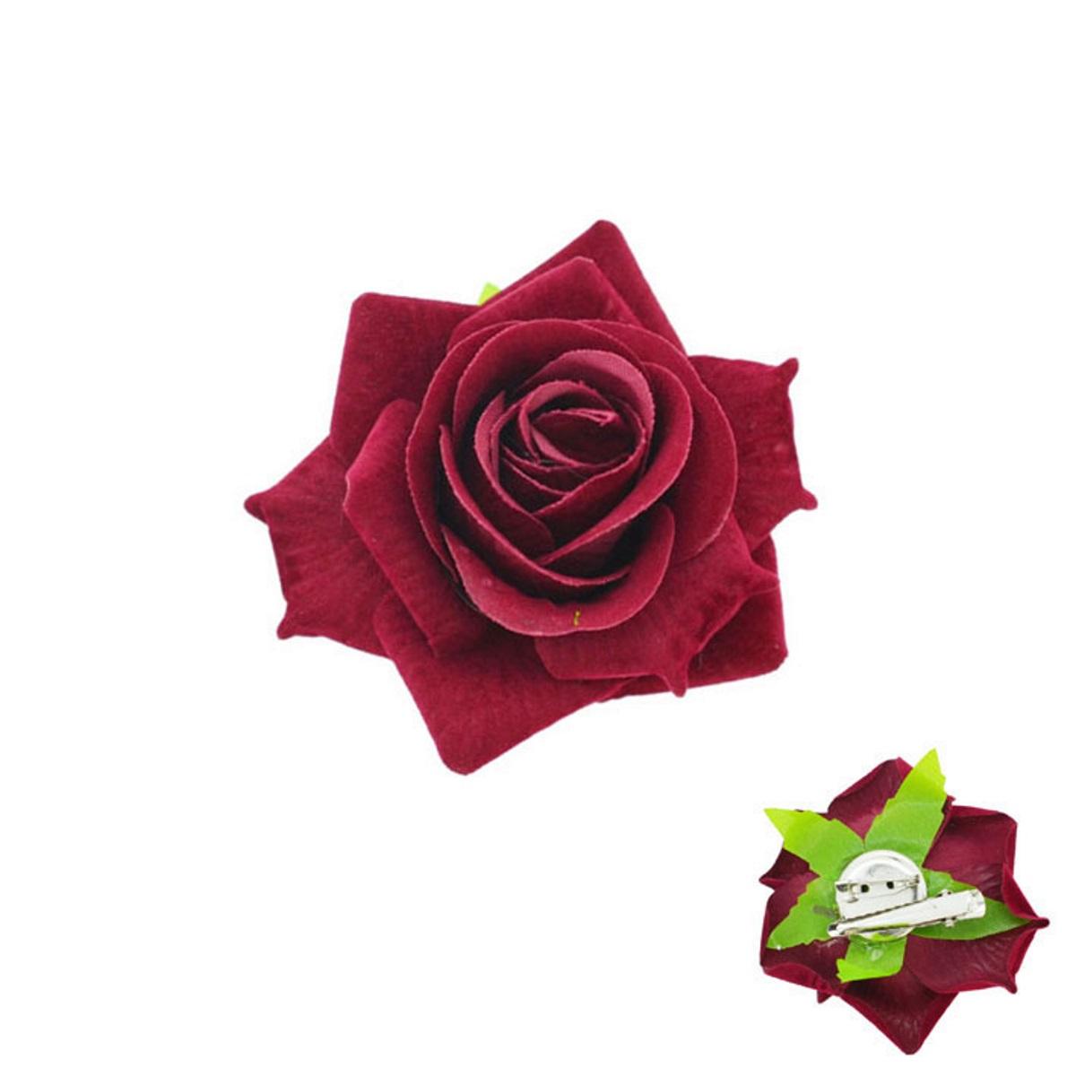 Barrette cheveux en métal argenté et textile.