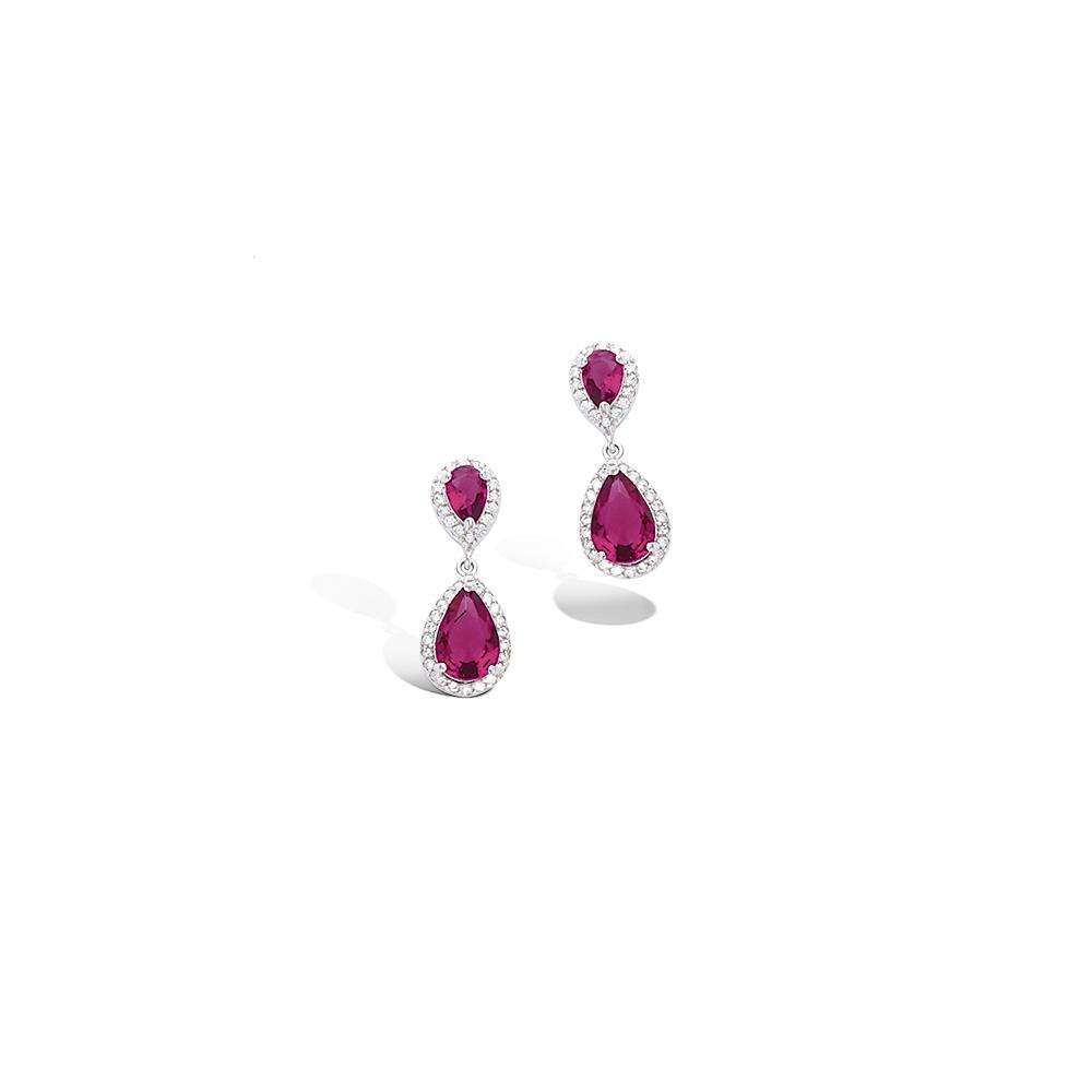Boucles d'oreilles en argent 925/000 rhodié, verre rubis et oxydes de zirconium.