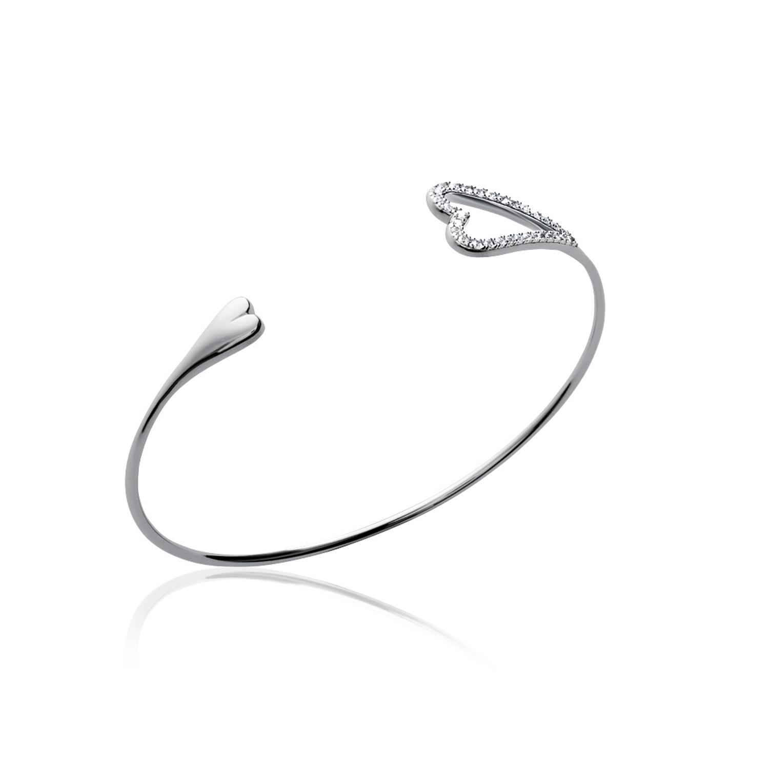 Bracelet jonc rigide en argent 925/000 rhodié et oxyde de zirconium.
