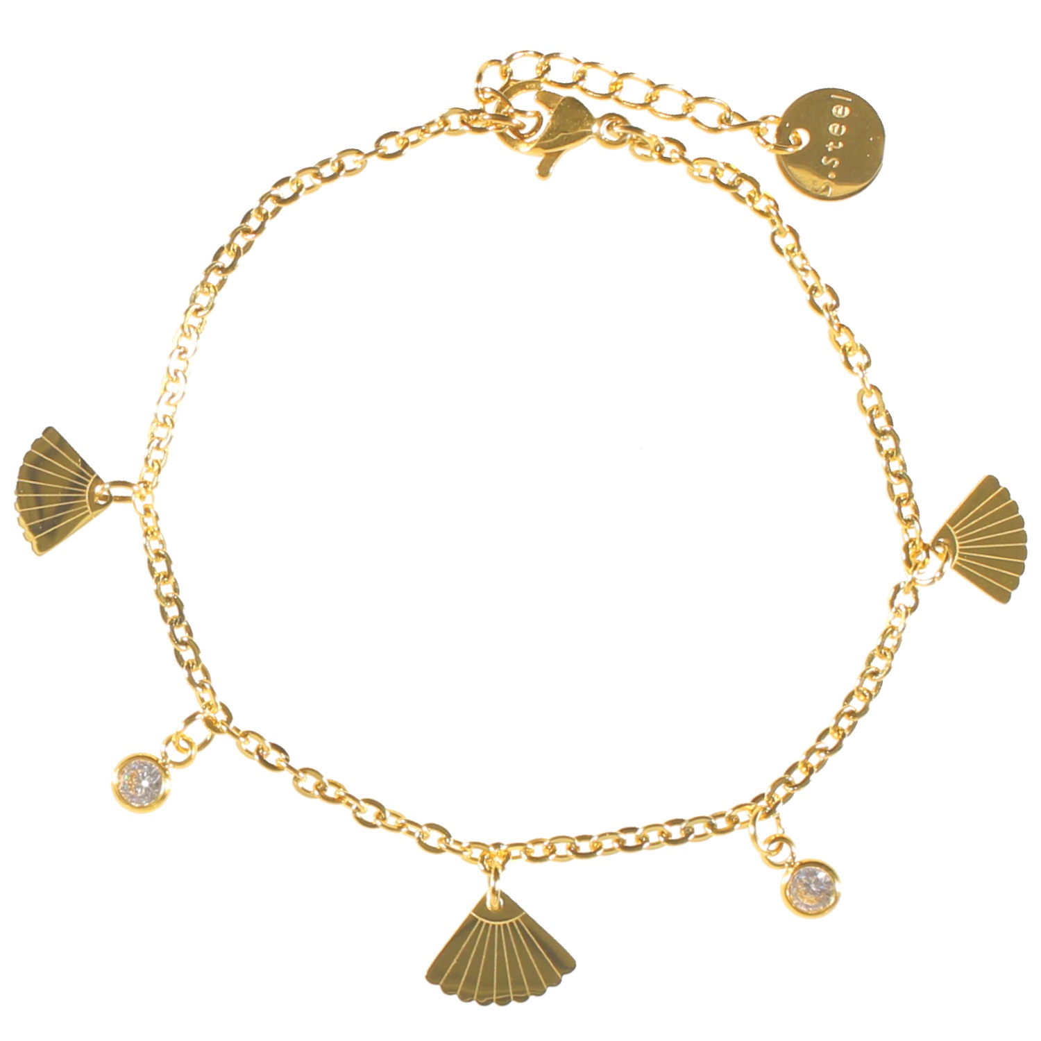 Description Bracelet avec pendants en acier doré et cristaux en verre. Longueur 16+2.5 cm [Guide des tailles] Largeur 10 mm Matière(s) Acier , Verre . L'acier utilisé dans la bijouterie existe sous plusieurs qualités. Nous utilisons principalement la qualité 316L, qualité qui est utilisée en chirurgie. Cet acier est donc inoxydable et reste très résistant. Fermoir Mousqueton Couleur(s) dominante(s) Doré Public Adolescent , Adulte . Genre Femme , Fille . Saison Indémodable . Cliquez sur une matière, un thème, une couleur ou une collection pour voir tous les articles associés.