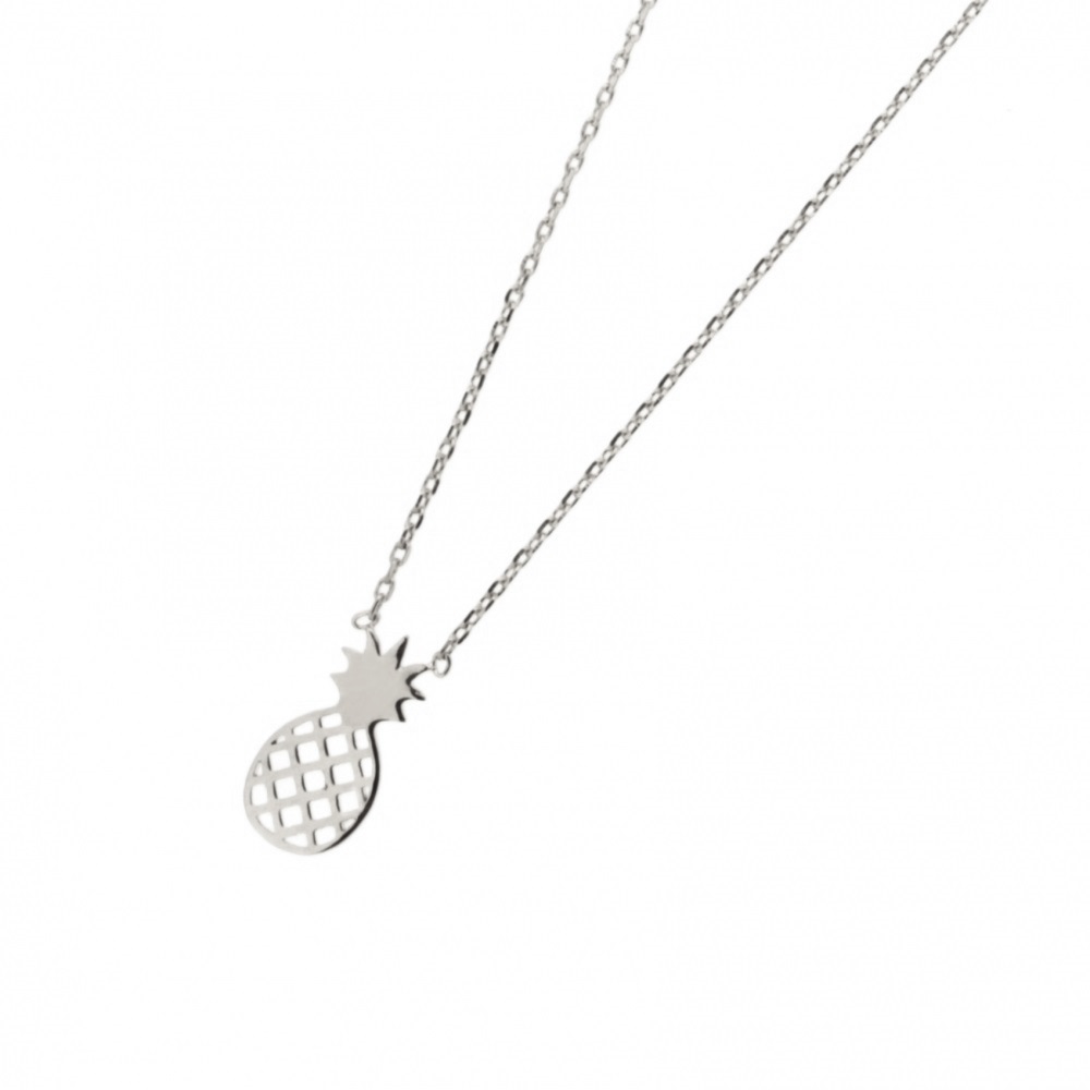 Collier avec pendentif ananas en argent 925/000 rhodié.