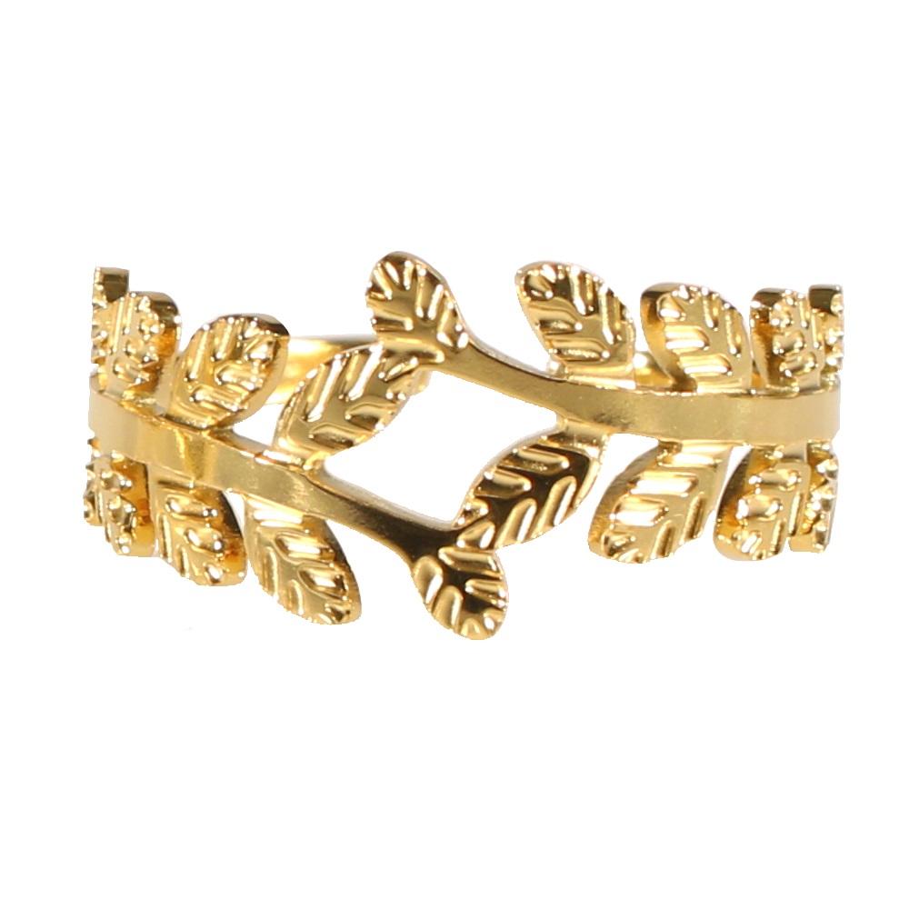 Description Bague couronne de laurier en acier doré. Largeur 10 mm Matière(s) Acier . L'acier utilisé dans la bijouterie existe sous plusieurs qualités. Nous utilisons principalement la qualité 316L, qualité qui est utilisée en chirurgie. Cet acier est donc inoxydable et reste très résistant. À noter Taille ajustable Couleur(s) dominante(s) Doré Public Adolescent , Adulte . Genre Femme , Fille . Saison Indémodable . Thème(s) Nature , Symboles . Collection Plumes et Lauriers Cliquez sur une matière, un thème, une couleur ou une collection pour voir tous les articles associés.