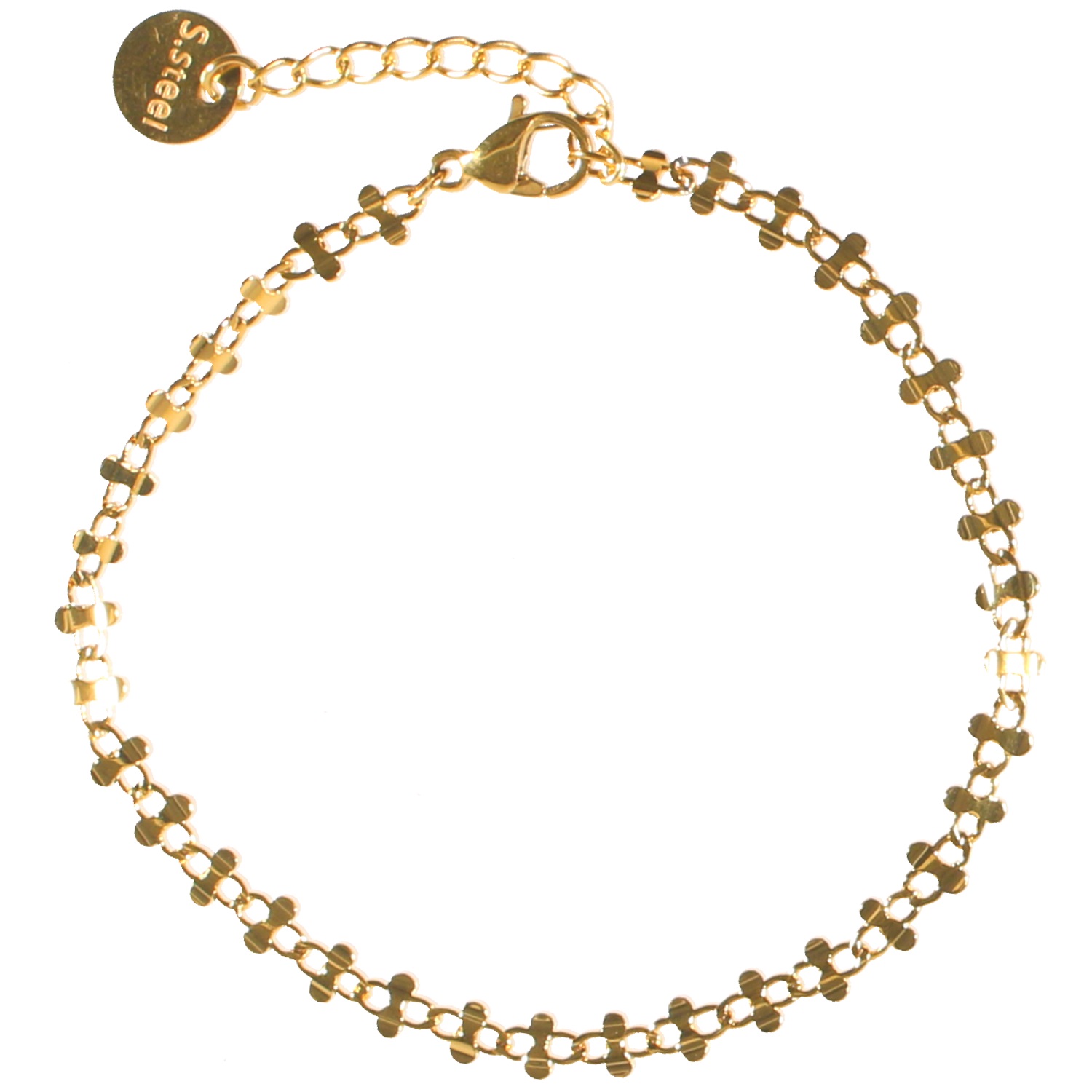 Description Bracelet en acier doré. Fermoir mousqueton avec 2.5 cm de rallonge. Cliquez sur une matière, un thème, une couleur ou une collection pour voir tous les articles associés.