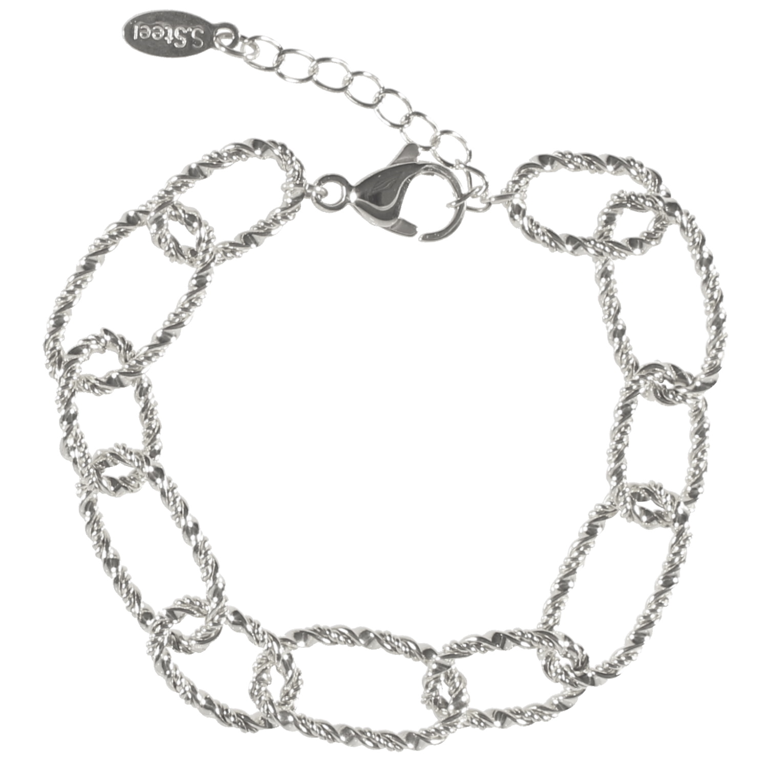 Description Bracelet grosse maille au fil tressé en acier argenté. Fermoir mousqueton avec 3 cm de rallonge. Cliquez sur une matière, un thème, une couleur ou une collection pour voir tous les articles associés.