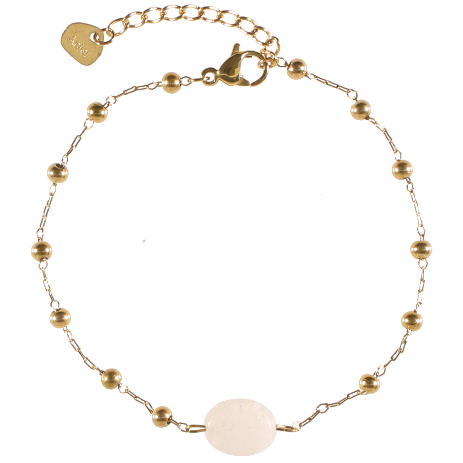 Description Bracelet composé d'une chaîne avec perles en acier doré et une véritable pierre de jade blanc. Fermoir mousqueton avec 3 cm. Cliquez sur une matière, un thème, une couleur ou une collection pour voir tous les articles associés.