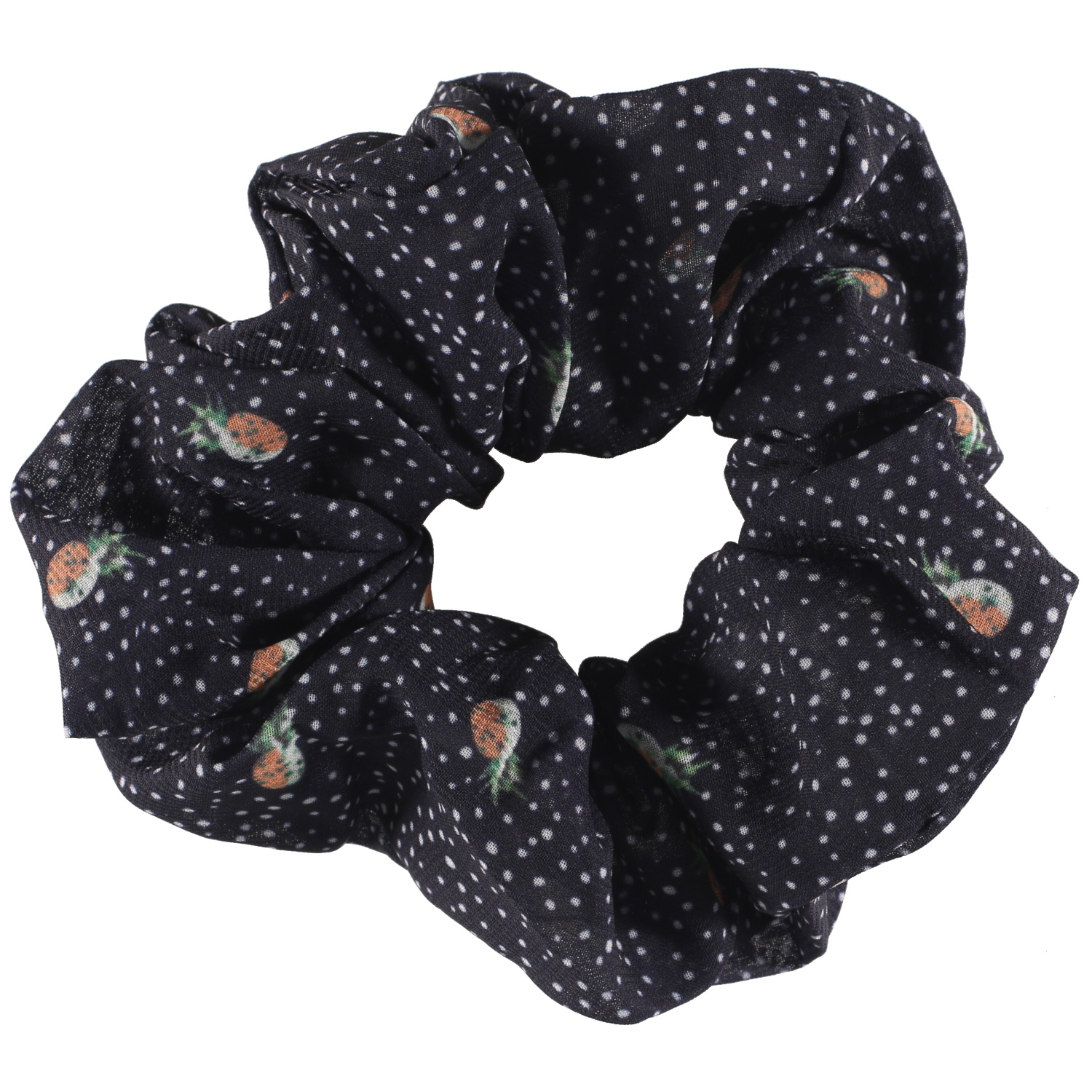 Description Chouchou élastique pour cheveux en textile de couleur avec motifs pois et dessins d'ananas. Cliquez sur une matière, un thème, une couleur ou une collection pour voir tous les articles associés.