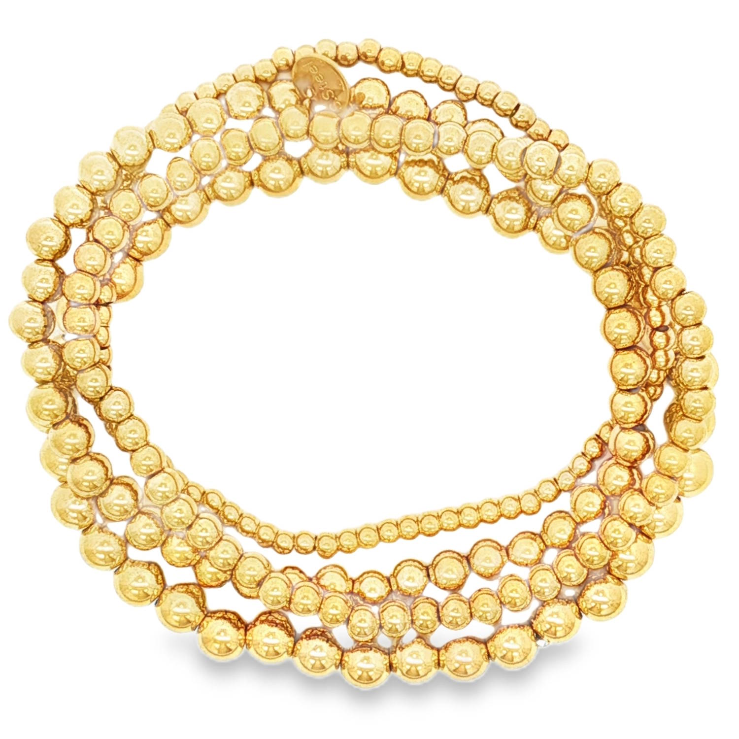 Description Ce somptueux lot de 4 bracelets élastiques en acier doré se compose de perles sphériques harmonieusement agencées pour un éclat continu. Le montage assure une symétrie parfaite et un tombé fluide sur le poignet. Un bijou intemporel idéal pour une élégance quotidienne ou une occasion spéciale. Longueur 16 cm [Guide des tailles] Largeur 17 mm Matière(s) Acier . L'acier utilisé dans la bijouterie existe sous plusieurs qualités. Nous utilisons principalement la qualité 316L, qualité qui est utilisée en chirurgie. Cet acier est donc inoxydable et reste très résistant. Fermoir Aucun Couleur(s) dominante(s) Doré Public Adolescent , Adulte . Genre Femme , Fille . Saison Indémodable . Cliquez sur une matière, un thème, une couleur ou une collection pour voir tous les articles associés.