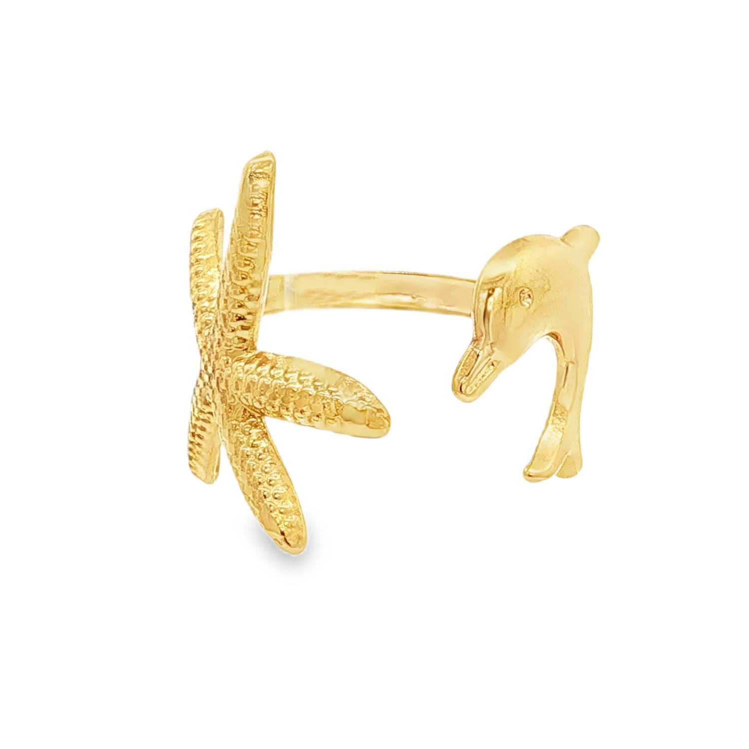 Description Apportez une touche de fraîcheur océanique à votre style avec cette bague au design asymétrique et poétique. Conçue en acier inoxydable de haute qualité avec une finition dorée éclatante, elle célèbre la beauté de la vie marine à travers deux symboles emblématiques. D'un côté, une étoile de mer finement travaillée avec une texture granuleuse réaliste qui capture la lumière. De l'autre, un dauphin aux lignes fluides et polies, semblant plonger avec grâce. Sa structure ajustable permet de l'adapter facilement à toutes les morphologies de doigts. Largeur 20 mm Matière(s) Acier . L'acier utilisé dans la bijouterie existe sous plusieurs qualités. Nous utilisons principalement la qualité 316L, qualité qui est utilisée en chirurgie. Cet acier est donc inoxydable et reste très résistant. Fermoir Aucun Couleur(s) dominante(s) Doré Public Adolescent , Adulte . Genre Femme , Fille . Saison Indémodable . Thème(s) Animaux , Nature . Collection Seaside Cliquez sur une matière, un thème, une couleur ou une collection pour voir tous les articles associés.