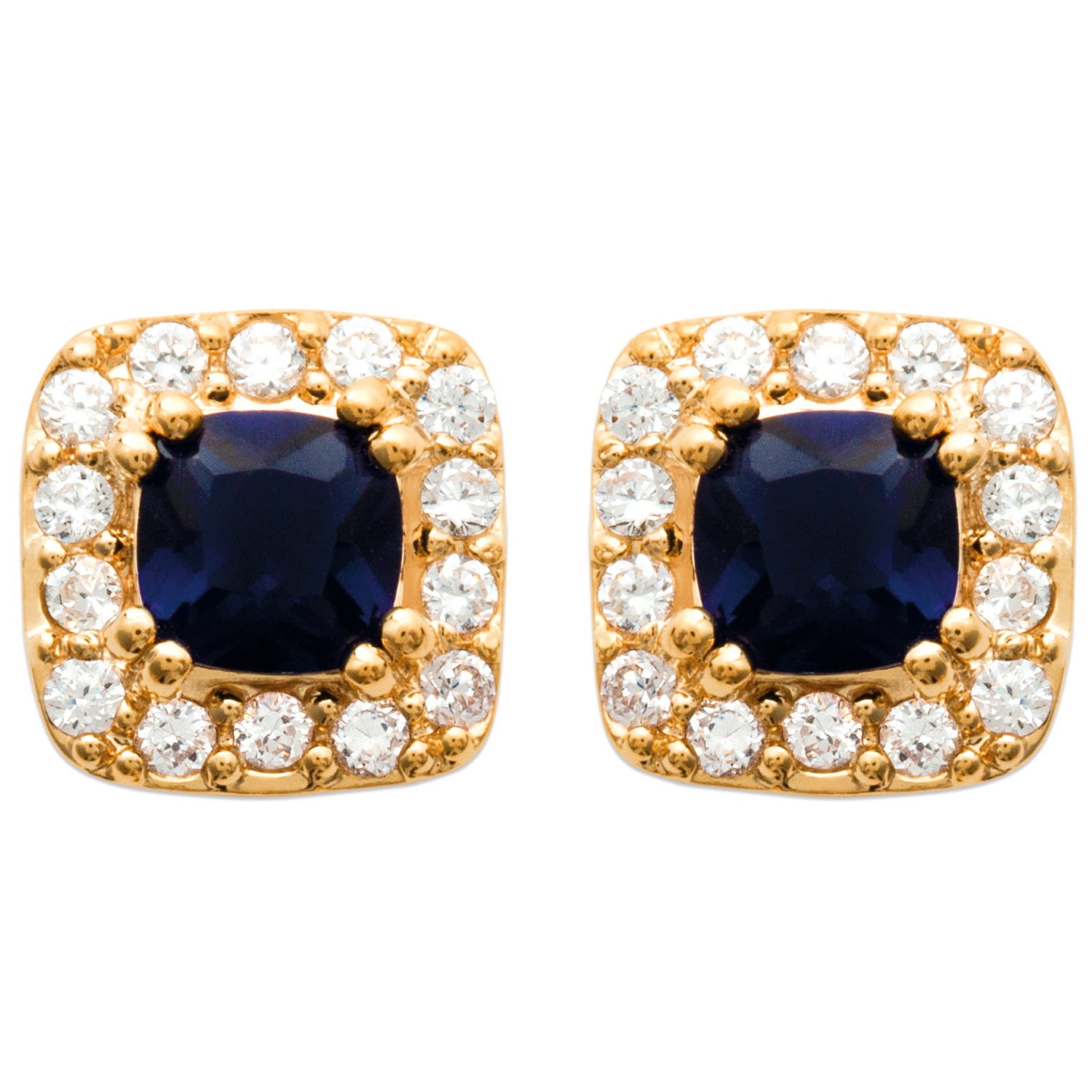 Boucles d'oreilles en plaqué-or, oxyde de zirconium et pierres synthétiques.