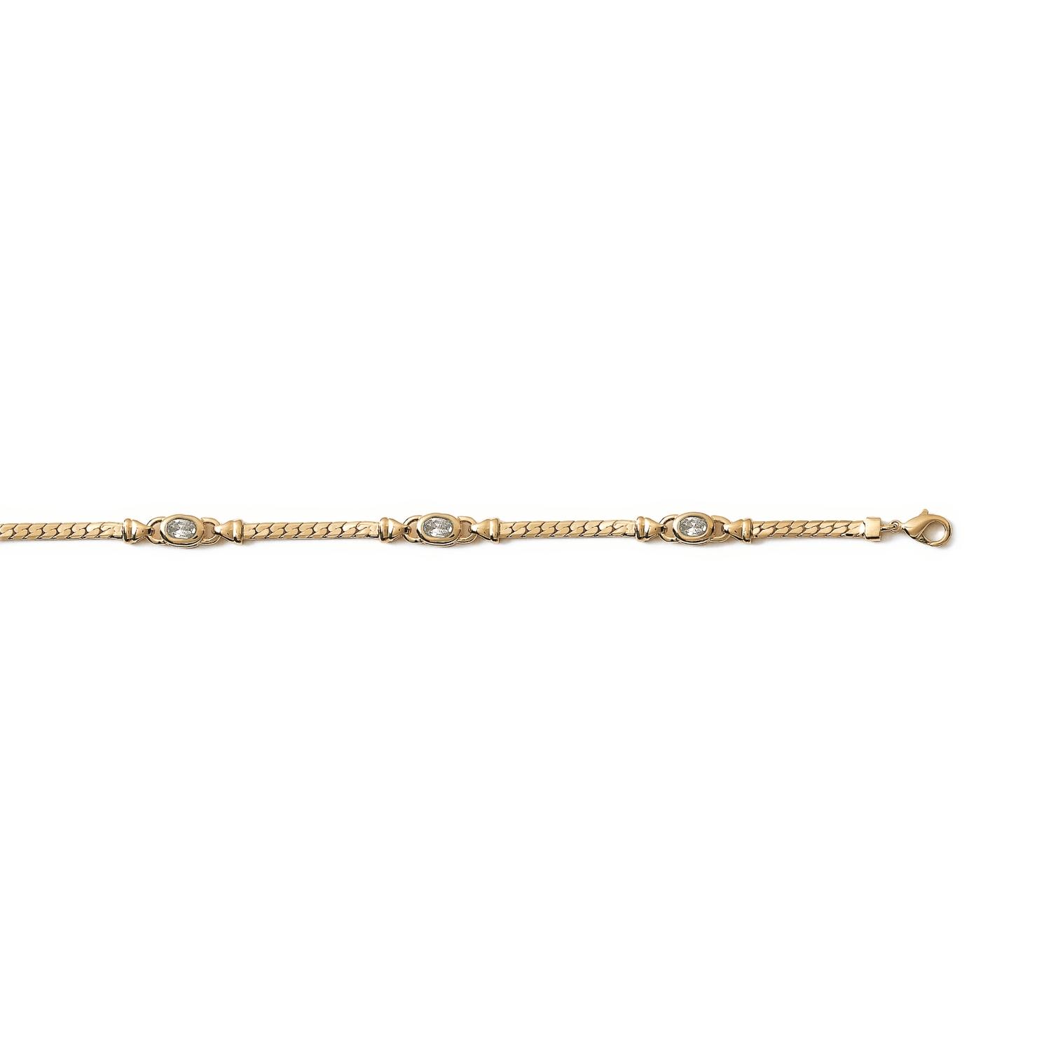 Description Bracelet en plaqué-or et oxyde de zirconium. Longueur 18 cm [Guide des tailles] Largeur 6 mm Matière(s) Plaqué or , Zirconium . Nos bijoux en plaqué or sont faits sur une base de laiton et recouverts d'or 18 carats à 3 microns sans dispersion. Cela signifie que nous garantissons 3 microns d'or sur n'importe quelle partie du bijou. Sur la plupart de nos bijoux empierrés, nous montons à 5 microns d'or 18 carats. Pour finir, nous faisons également une finition avec de l'or 24 carats afin de donner un plus bel éclat à nos bijoux. Fermoir Mousqueton Couleur(s) dominante(s) Doré Public Adulte . Genre Femme . Saison Indémodable . Rayon en magasin T35 Cliquez sur une matière, un thème, une couleur ou une collection pour voir tous les articles associés.