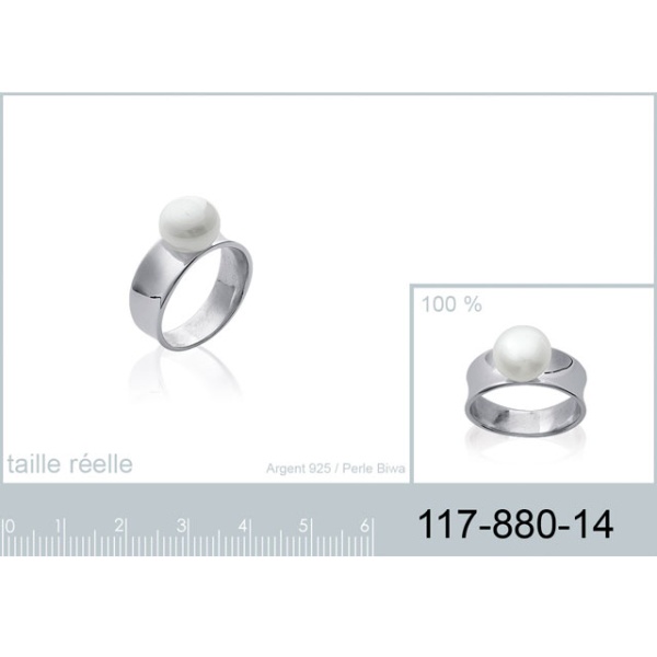 Bague en argent 925/000 et perle d'eau douce (BIWA).