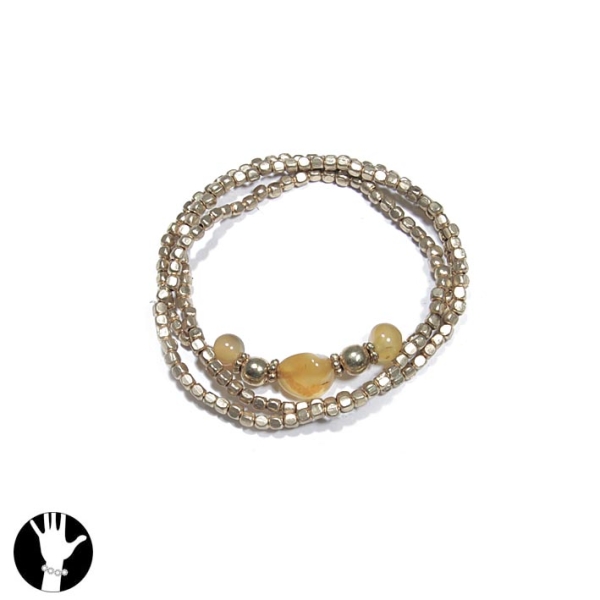 Bracelet fantaisie en métal doré et pierres naturelles.