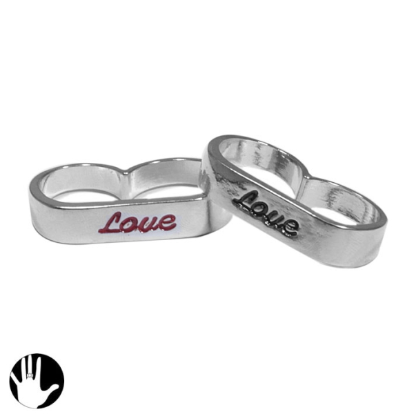 Bague fantaisie double en métal argenté et métal peint.