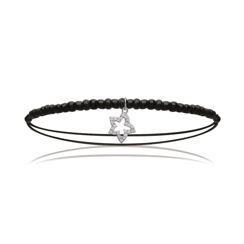 Bracelet en argent 925/000 rhodié, oxyde de zirconium et coton.