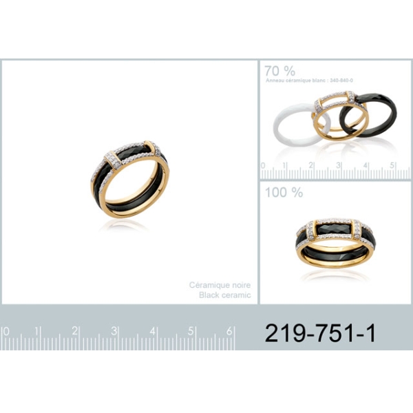 Bague en plaqué or, oxyde de zirconium et céramique.<br/>L'anneau en céramique échangeable mesure 3 mm de largeur.<br/>Les bagues B3408400, B3408407, B1173900 et B1173907 peuvent y être insérées. Lot  Adulte Femme Indémodable