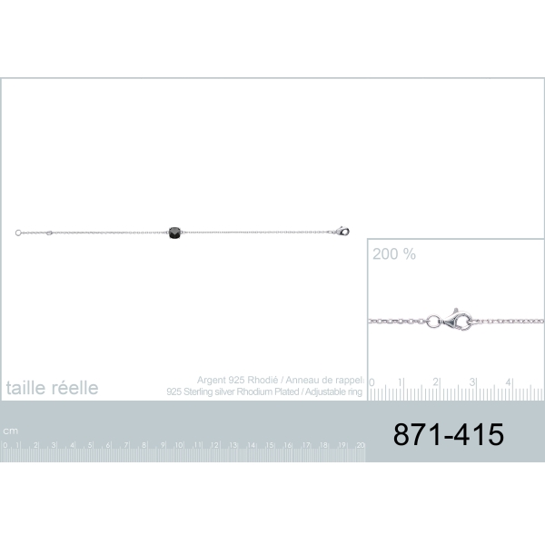 Bracelet en argent 925/000 rhodié et pierre synthétique. Carré  Adulte Femme Indémodable