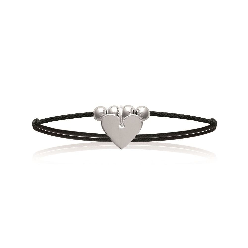 Bracelet en argent 925/000 rhodié et coton. Coeur Cordon  Adulte Amour Enfant Femme Fille Indémodable