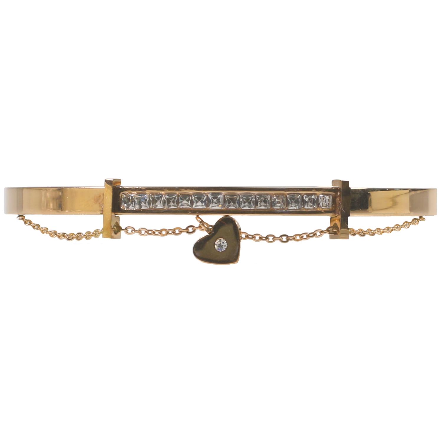 Bracelet jonc rigide en acier doré et verre.
