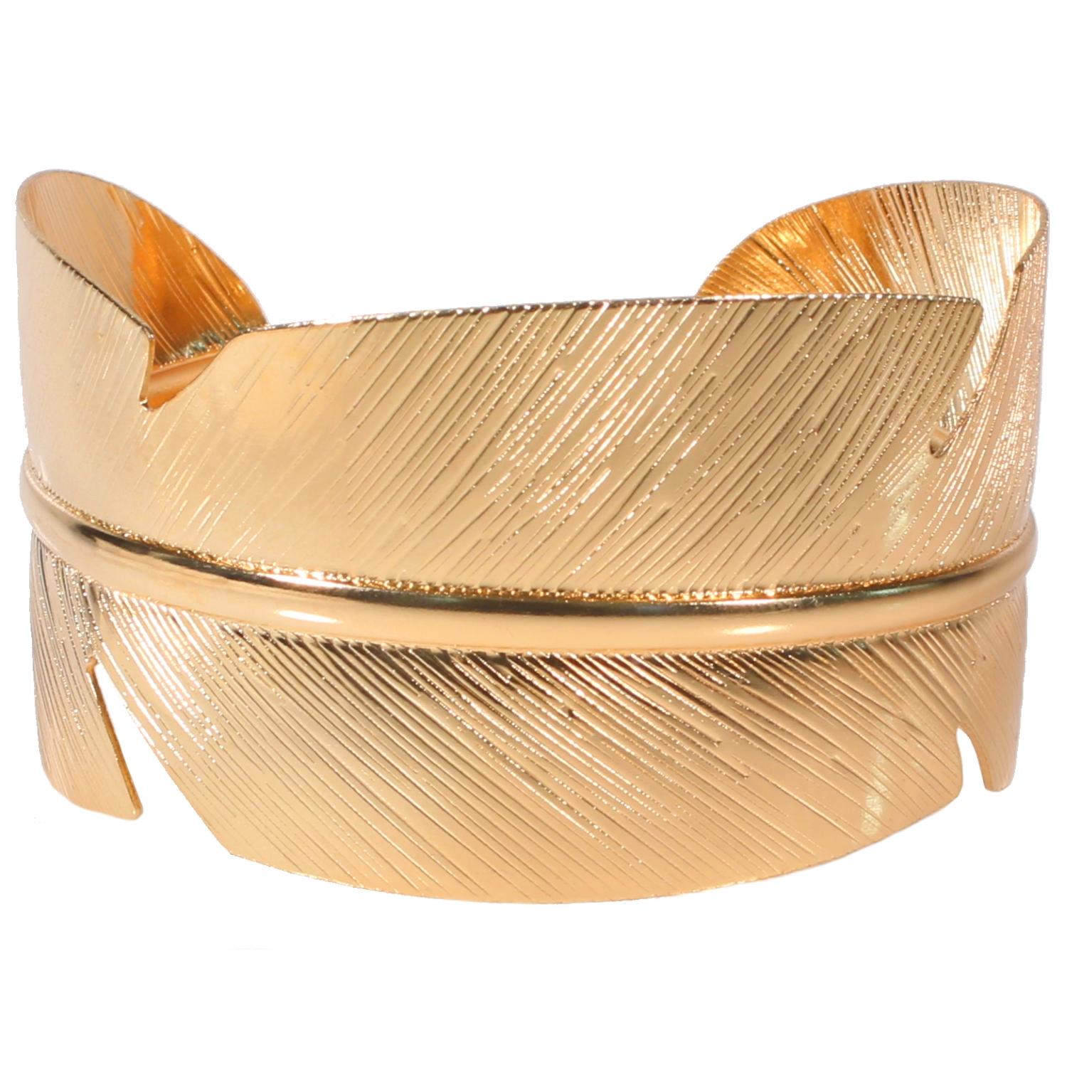 Bracelet manchette fantaisie rigide en métal doré.