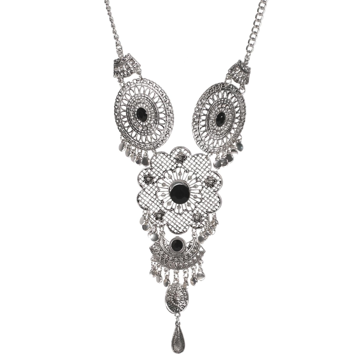 Collier fantaisie en métal argenté vieilli, rocaille et cristaux synthétiques. Ovale  Adolescent Adulte Femme Fille Indémodable Collier fantaisie en métal argenté vieilli, rocaille et cristaux synthétiques. Ovale  Adolescent Adulte Femme Fille Indémodable