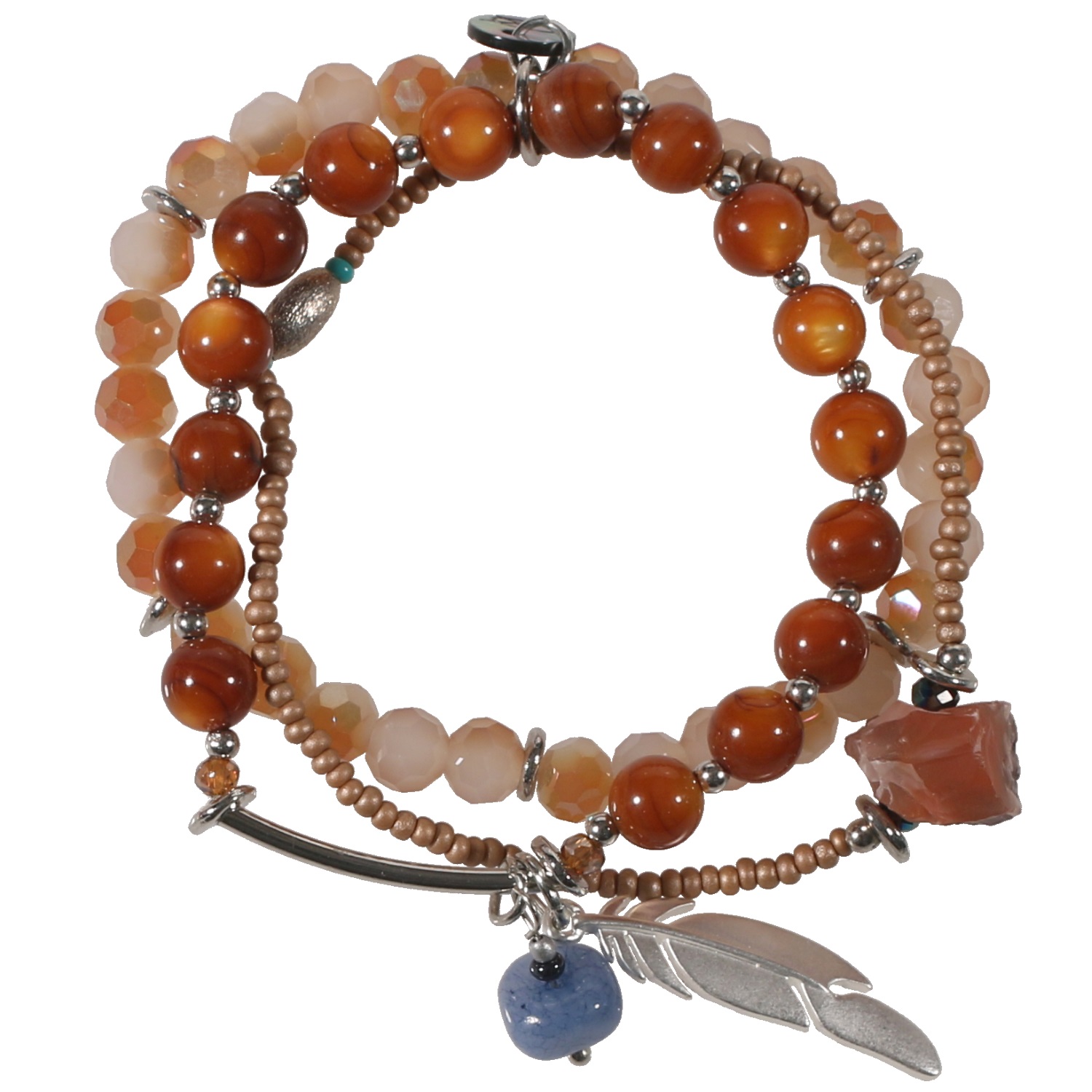 Lot de 3 bracelets fantaisie en métal argenté, rocaille et pierre naturelle.