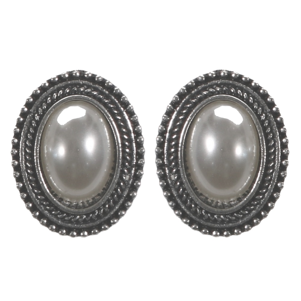 Description Boucles d'oreilles fantaisie en métal argenté et perles synthétiques. Cliquez sur une matière, un thème, une couleur ou une collection pour voir tous les articles associés.