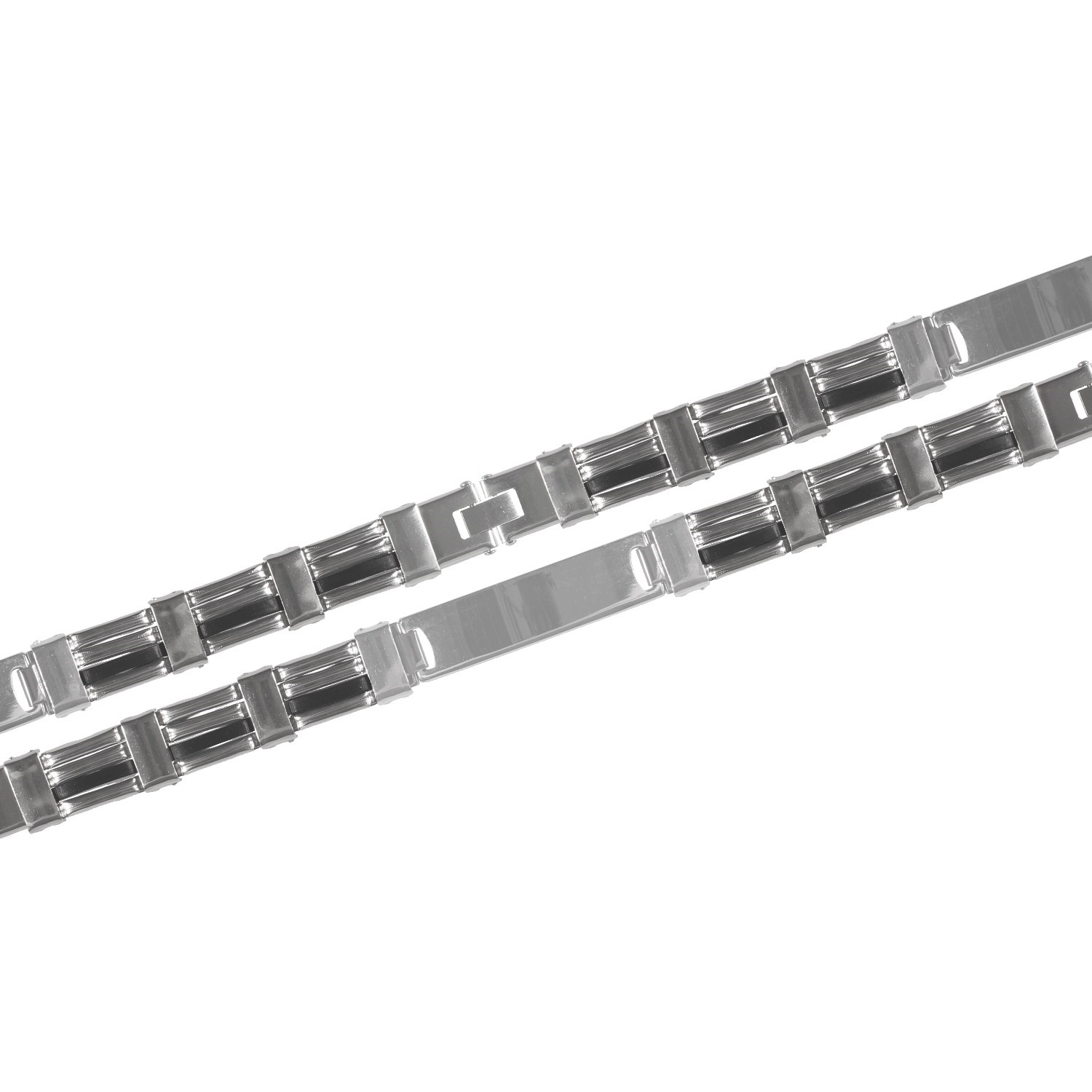 Bracelet gourmette identité pour homme en acier argenté et caoutchouc noir.