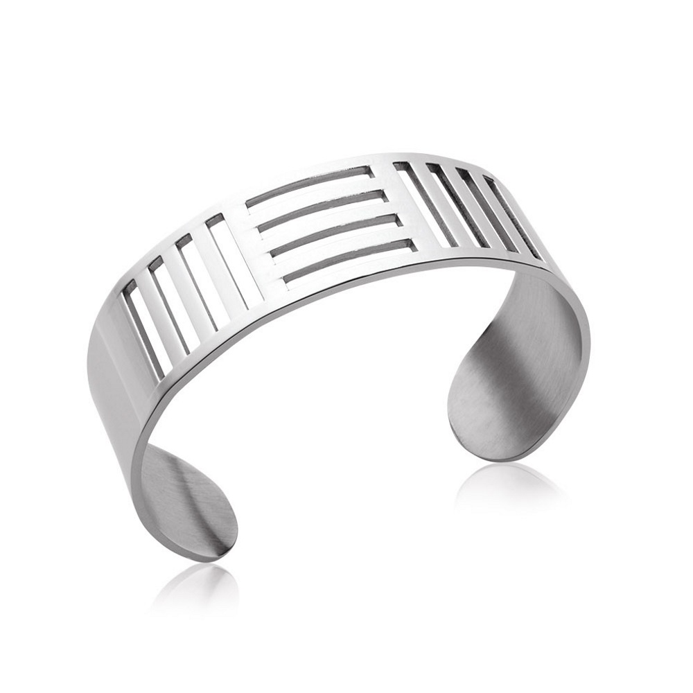 Description Bracelet manchette en acier argenté. Cliquez sur une matière, un thème, une couleur ou une collection pour voir tous les articles associés.