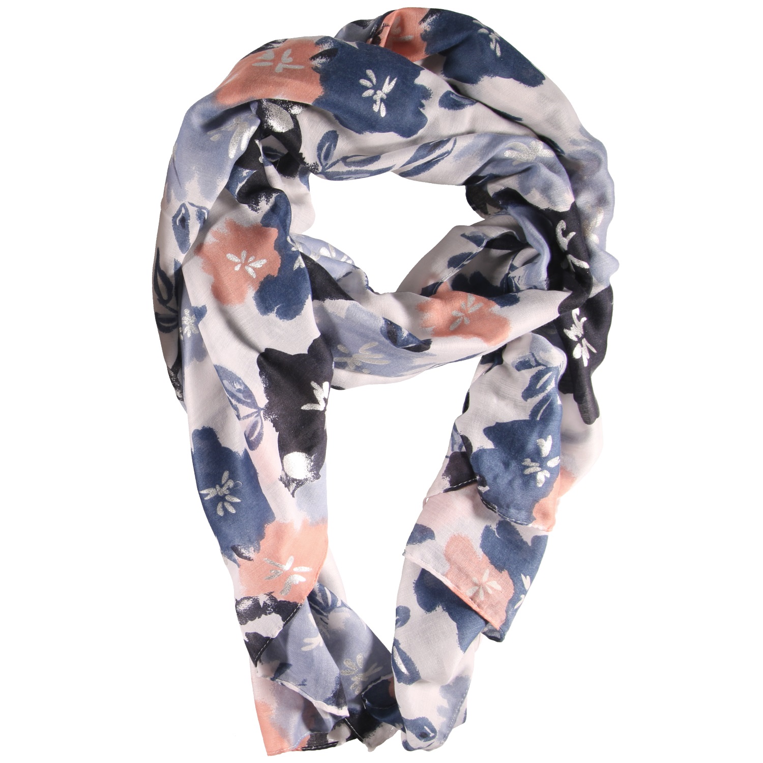 Foulard avec fleurs en 50% de coton et 50% de viscose.