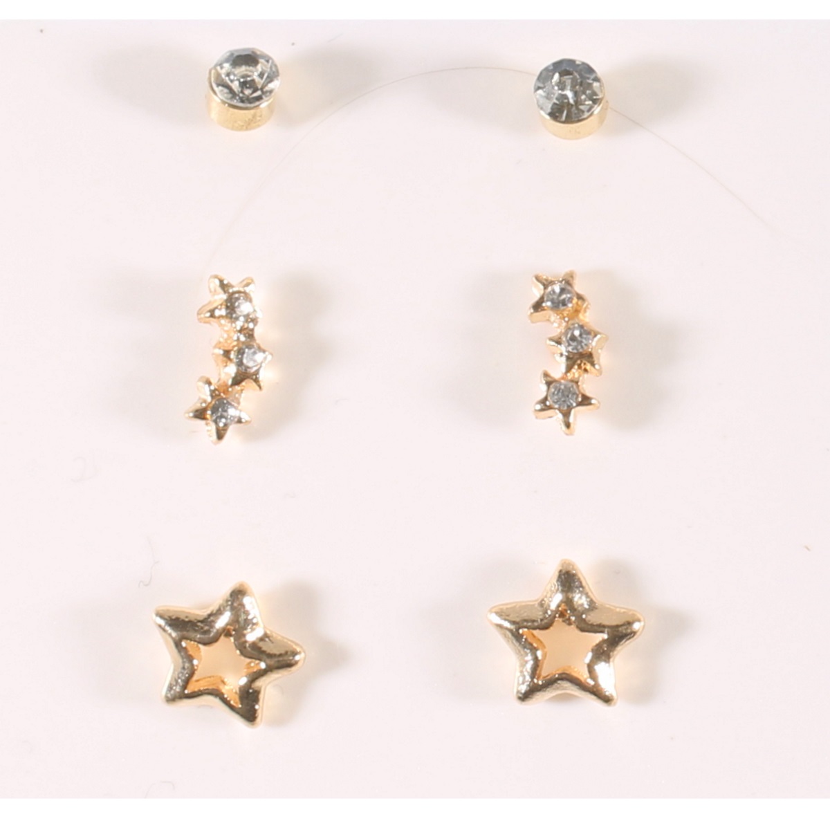 Lot de 3 paires de boucles d'oreilles fantaisie pour enfant en métal doré et cristaux synthétiques.