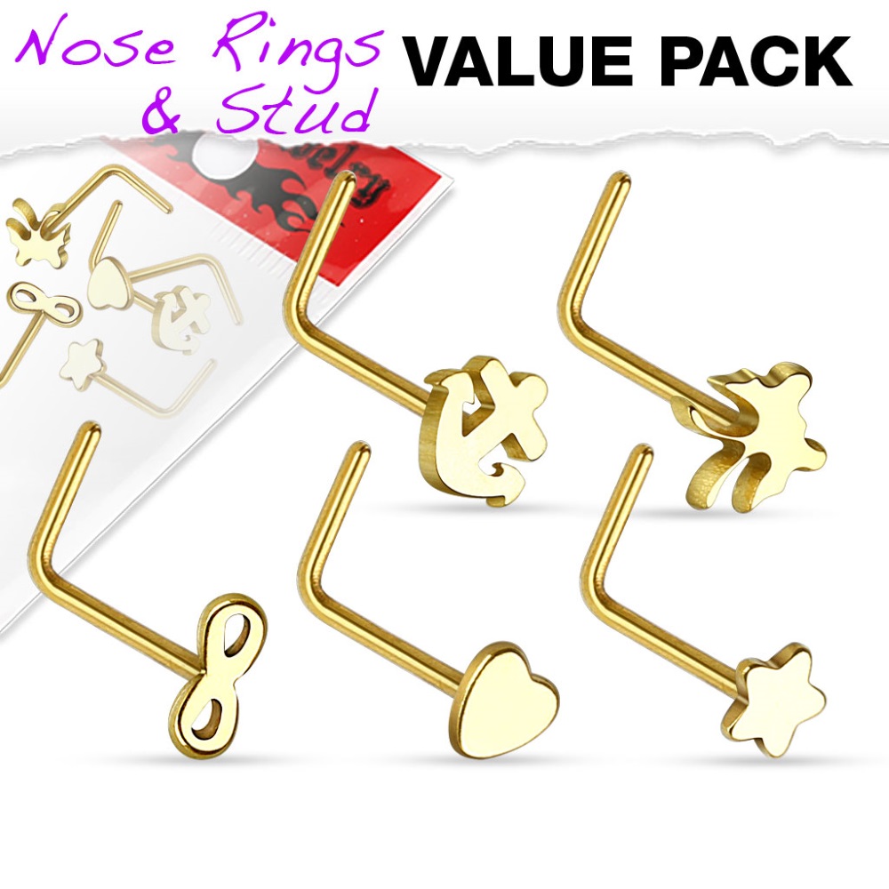 Description Lot de 5 piercings de nez en acier chirurgical 316L. Largeur 6 mm Matière(s) Acier . L'acier utilisé dans la bijouterie existe sous plusieurs qualités. Nous utilisons principalement la qualité 316L, qualité qui est utilisée en chirurgie. Cet acier est donc inoxydable et reste très résistant. Couleur(s) dominante(s) Doré Public Adolescent , Adulte . Genre Femme , Fille . Saison Indémodable . Cliquez sur une matière, un thème, une couleur ou une collection pour voir tous les articles associés.
