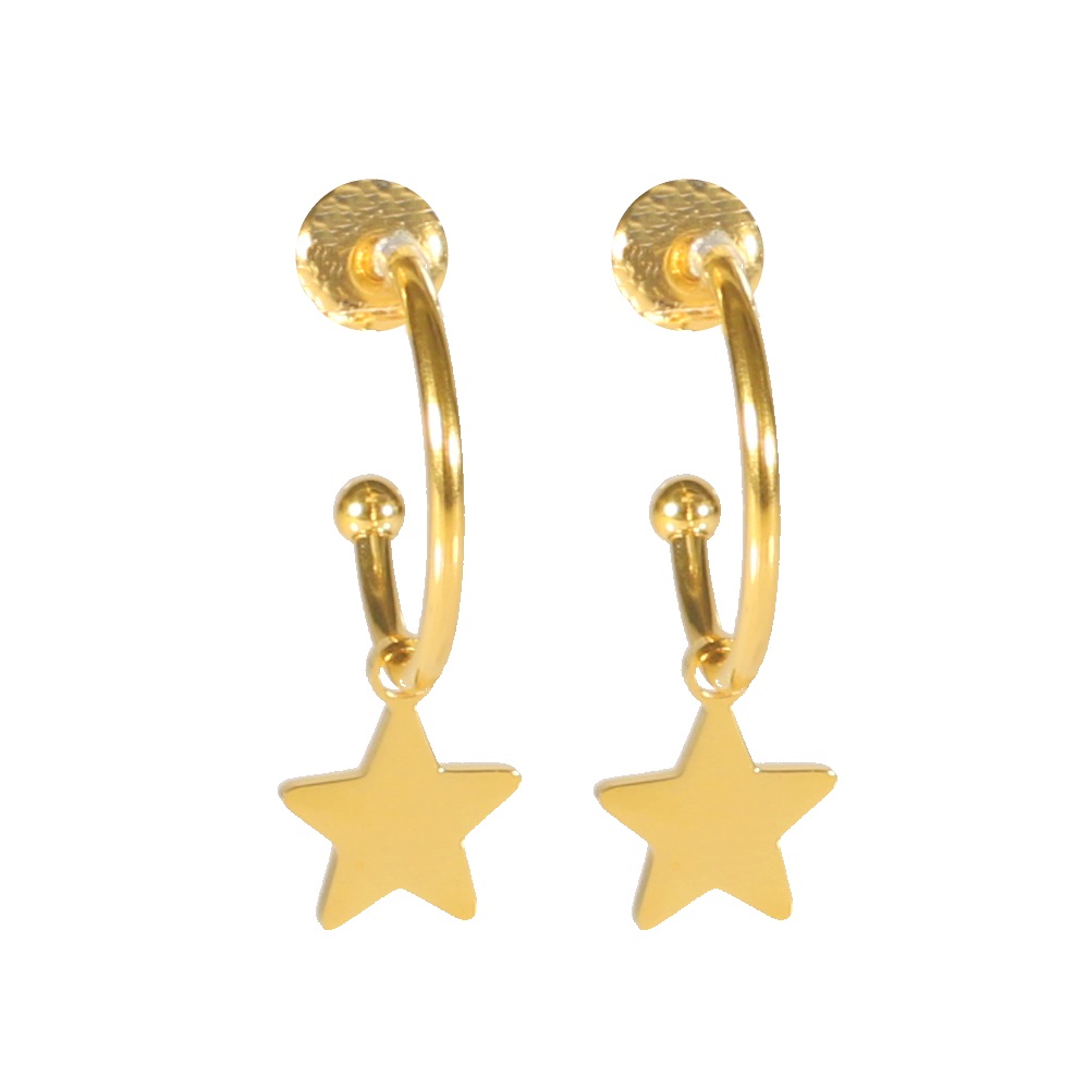 Description Boucles d'oreilles créoles avec étoile en acier doré. Largeur 10 mm Hauteur 30 mm Diamètre 15 mm Matière(s) Acier . L'acier utilisé dans la bijouterie existe sous plusieurs qualités. Nous utilisons principalement la qualité 316L, qualité qui est utilisée en chirurgie. Cet acier est donc inoxydable et reste très résistant. Fermoir Tiges poussettes Couleur(s) dominante(s) Doré Public Adolescent , Adulte . Genre Femme , Fille . Saison Indémodable . Thème(s) Nature . Cliquez sur une matière, un thème, une couleur ou une collection pour voir tous les articles associés.