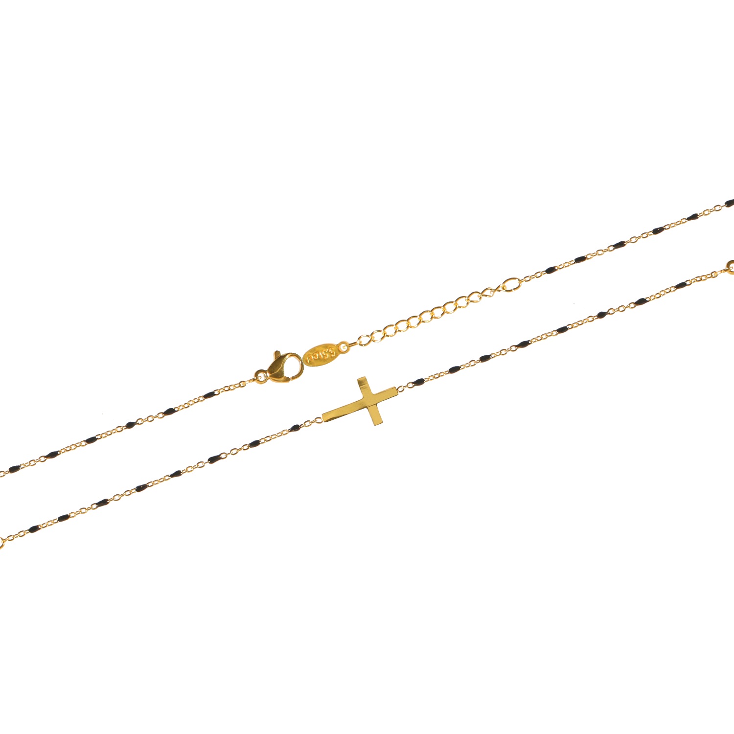 Bracelet avec croix en acier 316L doré et perles de couleur en émail.