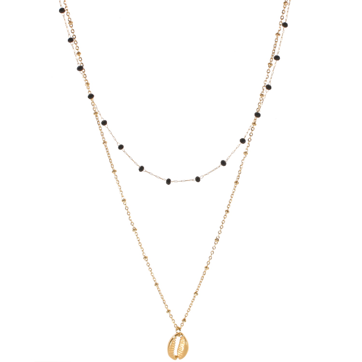 Description Collier double rangs composé d'un collier ras du cou de 34 cm en acier doré et perles de couleur ainsi qu'un collier de 45 cm avec pendentif coquillage en acier doré. L'ensemble peut se régler jusqu'à 7 cm. Longueur 34/45+7 cm [Guide des tailles] Matière(s) Acier , Rocaille . L'acier utilisé dans la bijouterie existe sous plusieurs qualités. Nous utilisons principalement la qualité 316L, qualité qui est utilisée en chirurgie. Cet acier est donc inoxydable et reste très résistant. Fermoir Mousqueton À noter Pendentif 10x10 mm Couleur(s) dominante(s) Doré , Noir Public Adolescent , Adulte . Genre Femme , Fille . Saison Eté . Thème(s) Nature . Collection Myriade , Seaside Cliquez sur une matière, un thème, une couleur ou une collection pour voir tous les articles associés.