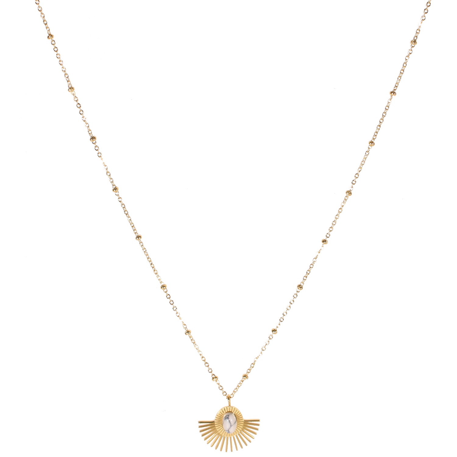 Description Collier avec pendentif en acier doré et pierre de couleur blanche. Longueur 38+7 cm [Guide des tailles] Matière(s) Acier , Rocaille . L'acier utilisé dans la bijouterie existe sous plusieurs qualités. Nous utilisons principalement la qualité 316L, qualité qui est utilisée en chirurgie. Cet acier est donc inoxydable et reste très résistant. Fermoir Mousqueton À noter Pendentif 18x15 mm Couleur(s) dominante(s) Blanc , Doré Public Adolescent , Adulte . Genre Femme , Fille . Saison Indémodable . Cliquez sur une matière, un thème, une couleur ou une collection pour voir tous les articles associés.