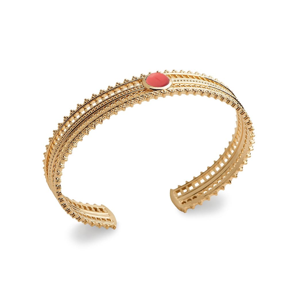 Description Bracelet jonc en plaqué or et pierre synthétique de couleur rouge corail. Largeur 10 mm Diamètre 58 mm [Guide des tailles] Matière(s) Pierre synthétique , Plaqué or . Nos bijoux en plaqué or sont faits sur une base de laiton et recouverts d'or 18 carats à 3 microns sans dispersion. Cela signifie que nous garantissons 3 microns d'or sur n'importe quelle partie du bijou. Sur la plupart de nos bijoux empierrés, nous montons à 5 microns d'or 18 carats. Pour finir, nous faisons également une finition avec de l'or 24 carats afin de donner un plus bel éclat à nos bijoux. Fermoir Aucun Couleur(s) dominante(s) Doré , Rouge Public Adolescent , Adulte . Genre Femme , Fille . Saison Indémodable . Collection AntiKa Cliquez sur une matière, un thème, une couleur ou une collection pour voir tous les articles associés.