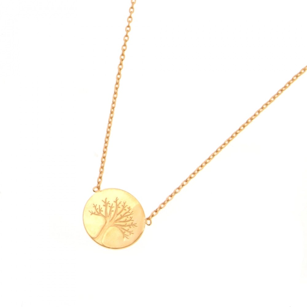 Collier avec pastille au motif arbre de vie en plaqué or.