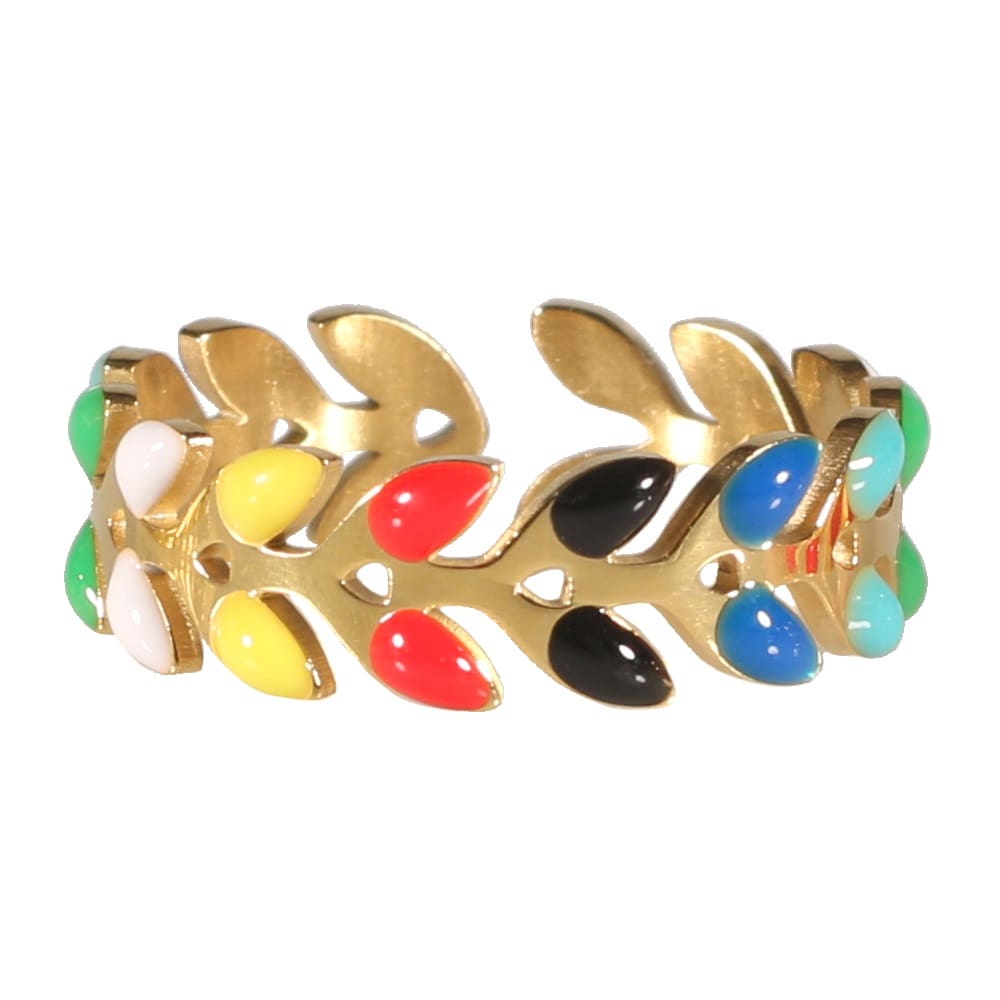 Description Bague couronne de laurier en acier doré et émail. Cliquez sur une matière, un thème, une couleur ou une collection pour voir tous les articles associés.