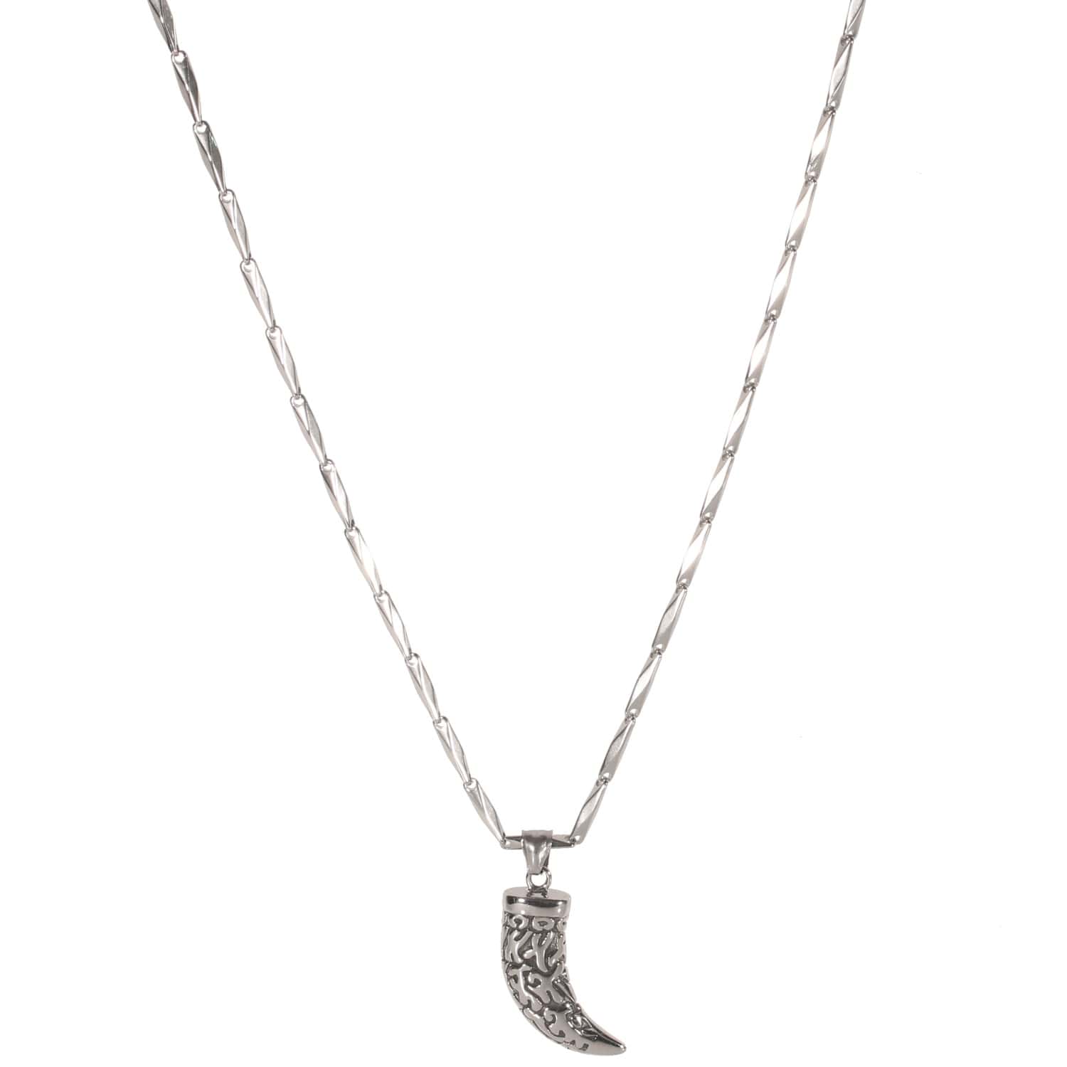 Description Collier pour hommes avec pendentif dent motif tribal en acier argenté. Cliquez sur une matière, un thème, une couleur ou une collection pour voir tous les articles associés.