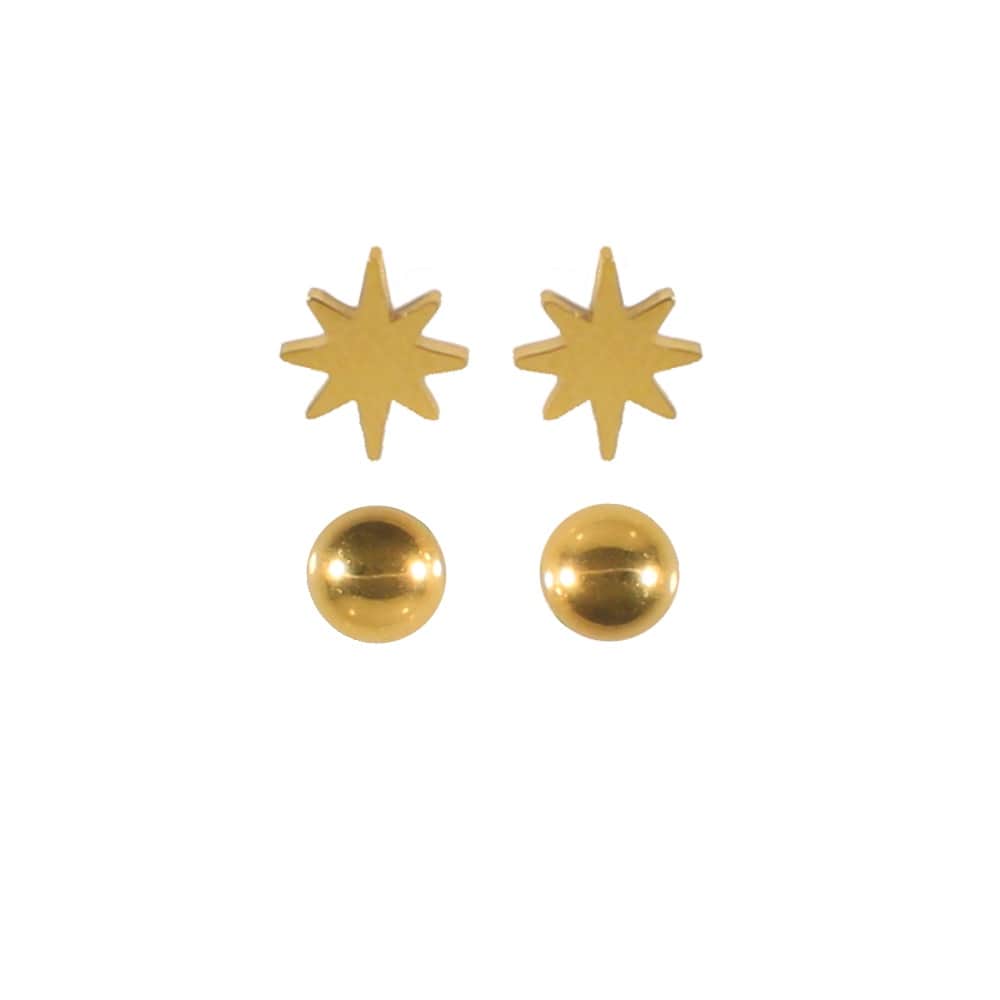 Description Lot de 2 boucles d'oreilles puces rondes et étoiles en acier doré. Largeur 7 mm Hauteur 8 mm Diamètre 6 mm Matière(s) Acier . L'acier utilisé dans la bijouterie existe sous plusieurs qualités. Nous utilisons principalement la qualité 316L, qualité qui est utilisée en chirurgie. Cet acier est donc inoxydable et reste très résistant. Fermoir Tiges poussettes Couleur(s) dominante(s) Doré Public Adolescent , Adulte . Genre Femme , Fille . Saison Indémodable . Thème(s) Nature . Collection Astre sublime Cliquez sur une matière, un thème, une couleur ou une collection pour voir tous les articles associés.
