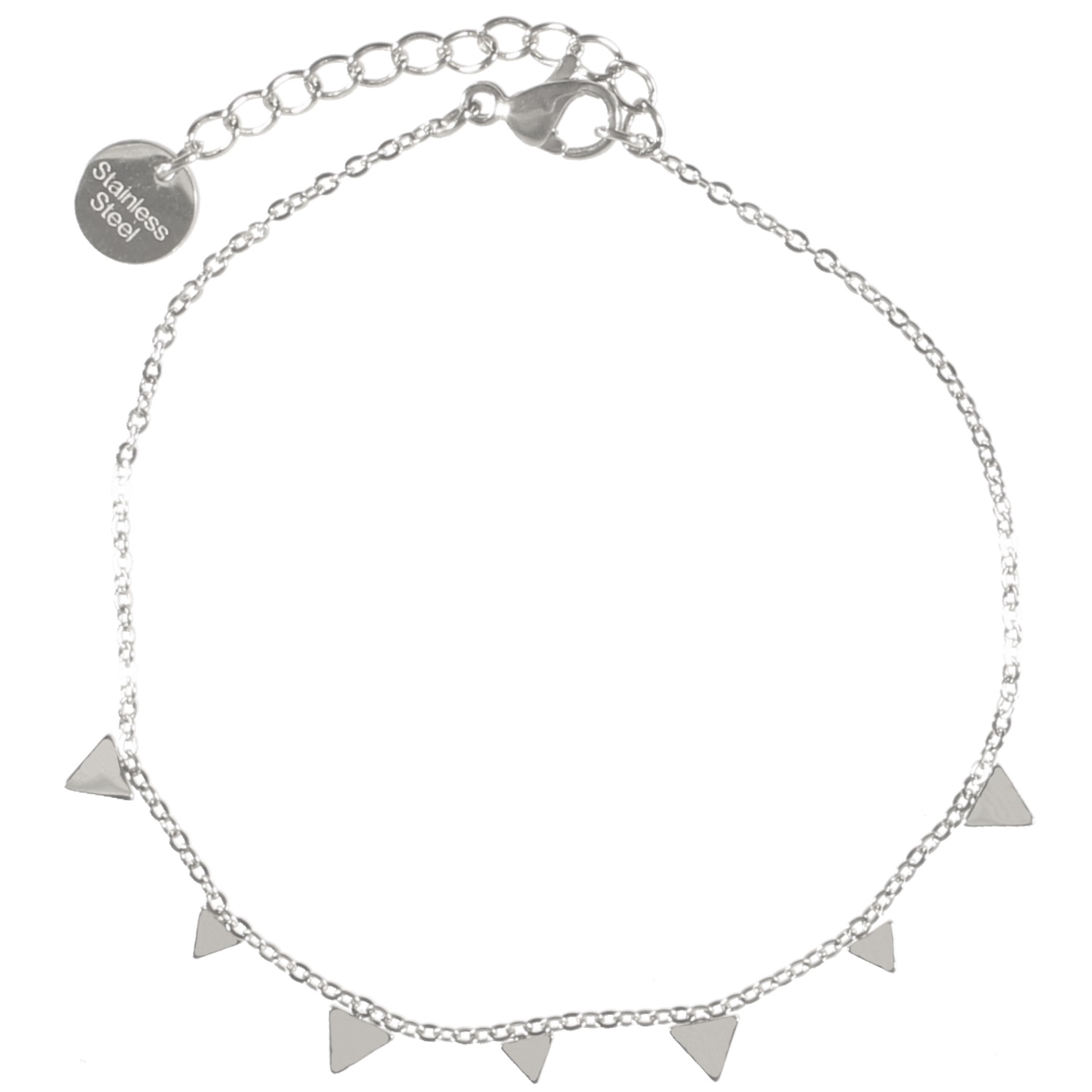 Description Bracelet avec pampilles triangulaires en acier argenté. Fermoir mousqueton avec 3 cm de rallonge. Cliquez sur une matière, un thème, une couleur ou une collection pour voir tous les articles associés.