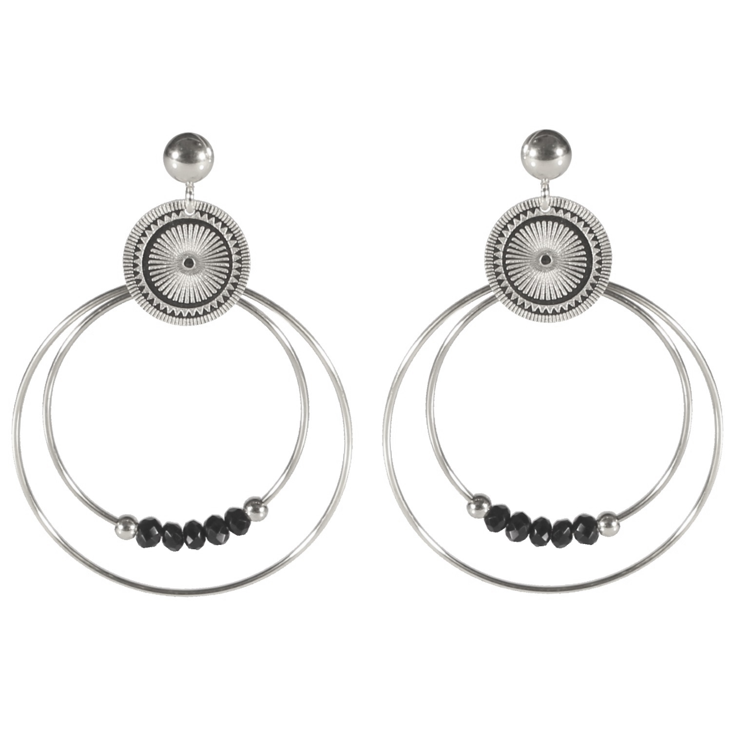 Description Boucles d'oreilles pendantes composées de médaillons et double cercles en acier argenté et perles de couleur noire. Largeur 32 mm Hauteur 45 mm Matière(s) Acier , Rocaille . L'acier utilisé dans la bijouterie existe sous plusieurs qualités. Nous utilisons principalement la qualité 316L, qualité qui est utilisée en chirurgie. Cet acier est donc inoxydable et reste très résistant. Fermoir Tiges poussettes Couleur(s) dominante(s) Argenté , Noir Public Adolescent , Adulte . Genre Femme , Fille . Saison Indémodable . Cliquez sur une matière, un thème, une couleur ou une collection pour voir tous les articles associés.