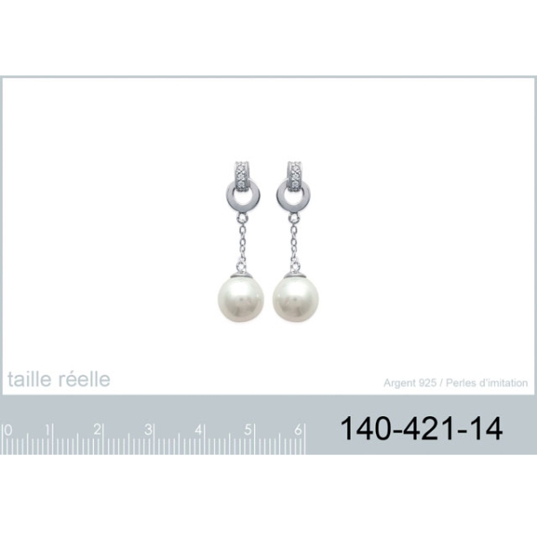 Boucles d'oreilles en argent 925/000 rhodié et perle d'imitation.