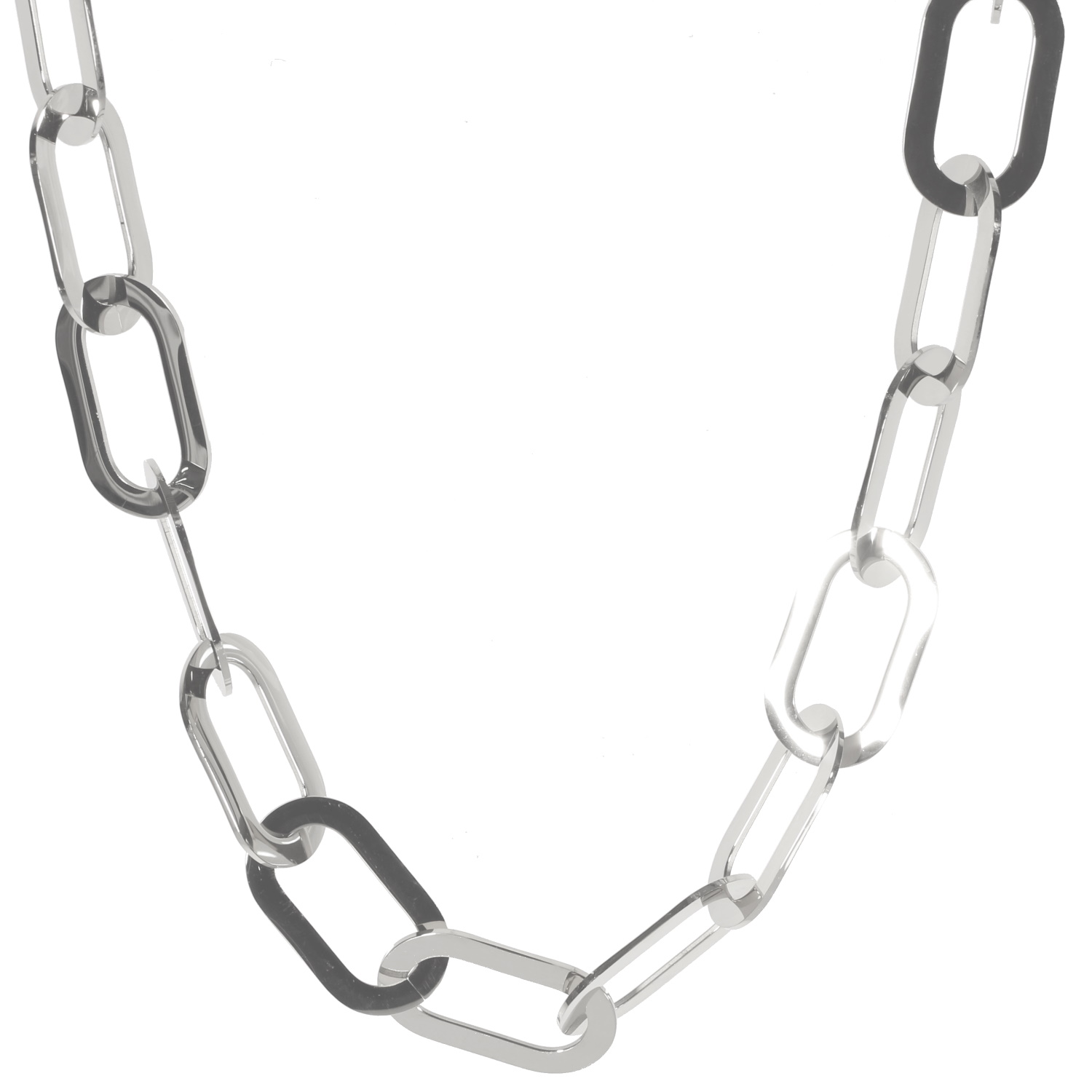 Description Collier avec maille plate en acier argenté. Fermoir mousqueton avec 5 cm de rallonge. Cliquez sur une matière, un thème, une couleur ou une collection pour voir tous les articles associés.