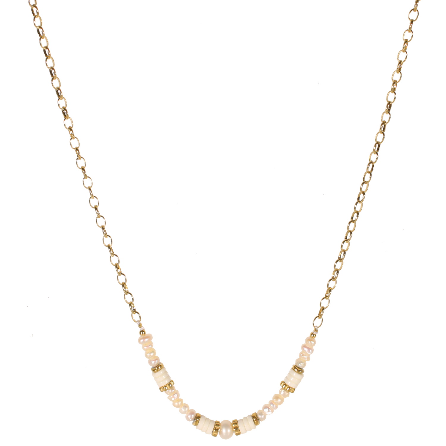 Collier composé d'une chaîne en acier doré et véritables perles de nacre.