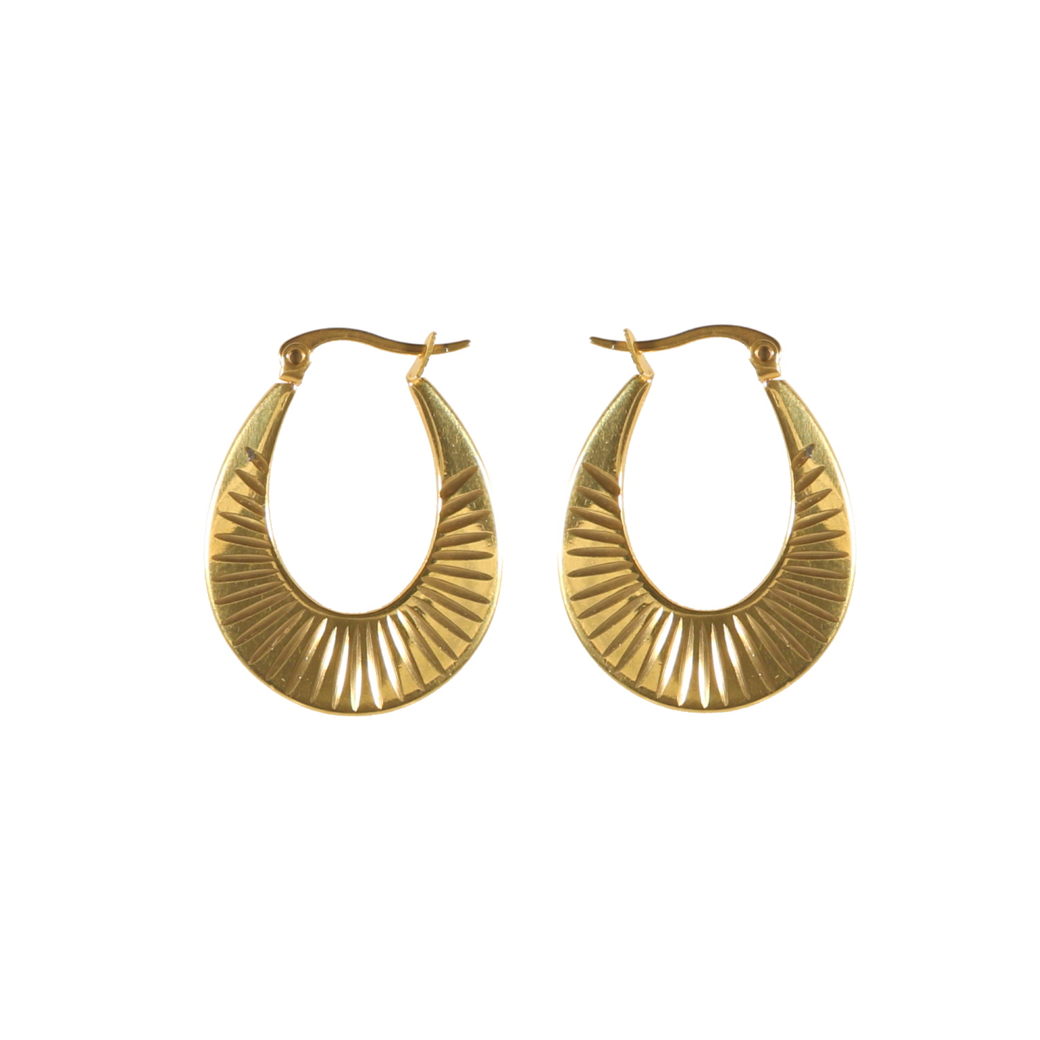 Description Boucles d'oreilles créoles de forme ovale avec motifs en acier doré. Largeur 25 mm Hauteur 32 mm Matière(s) Acier . L'acier utilisé dans la bijouterie existe sous plusieurs qualités. Nous utilisons principalement la qualité 316L, qualité qui est utilisée en chirurgie. Cet acier est donc inoxydable et reste très résistant. Fermoir Charnière Couleur(s) dominante(s) Doré Public Adolescent , Adulte . Genre Femme , Fille . Saison Indémodable . Cliquez sur une matière, un thème, une couleur ou une collection pour voir tous les articles associés.